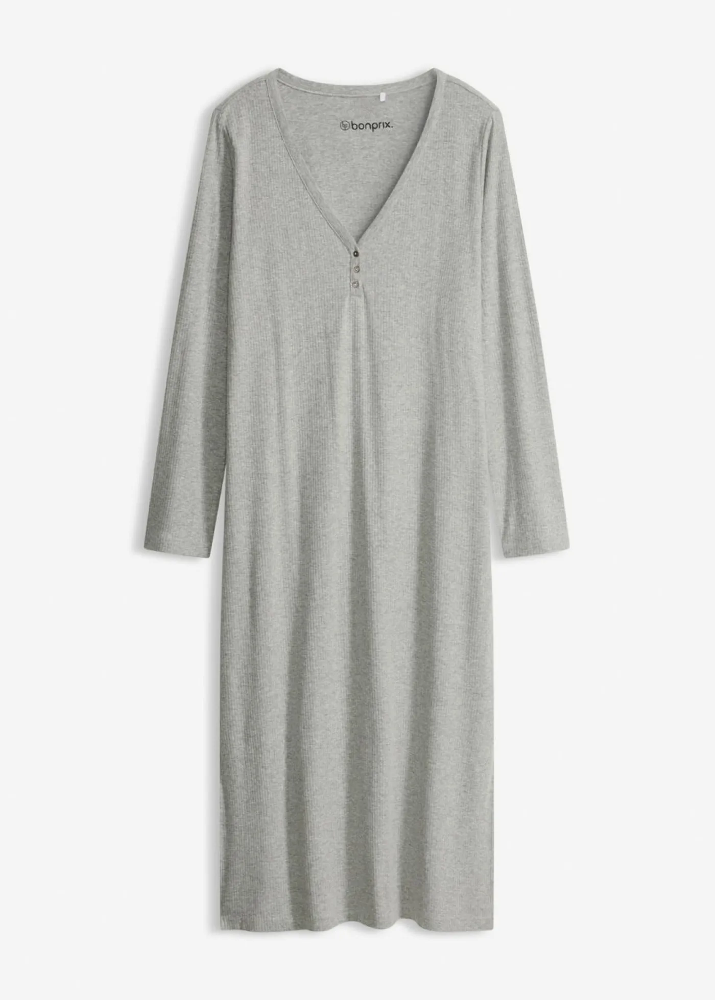 Camisón largo con manga larga, escote en V y aberturas laterales.