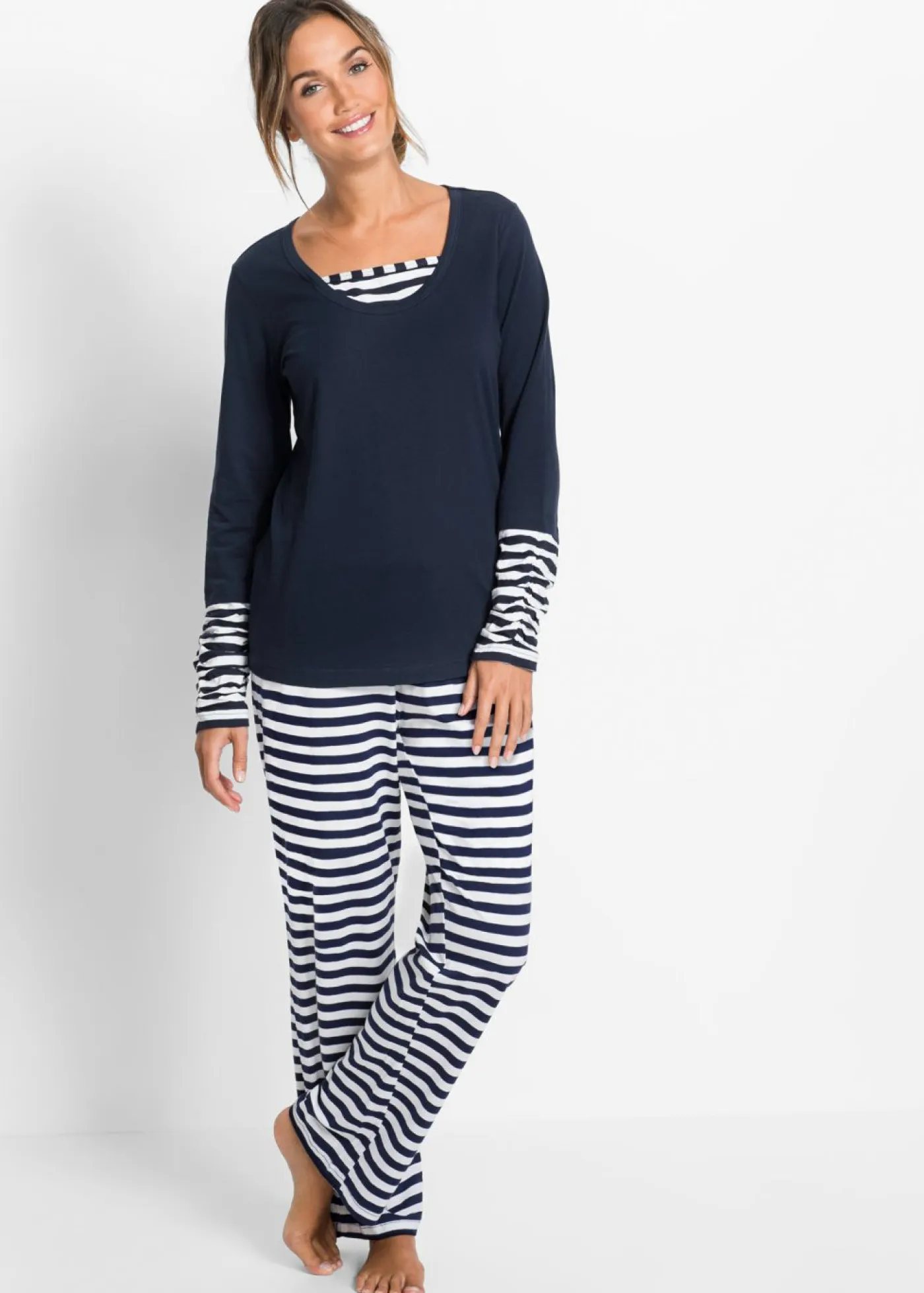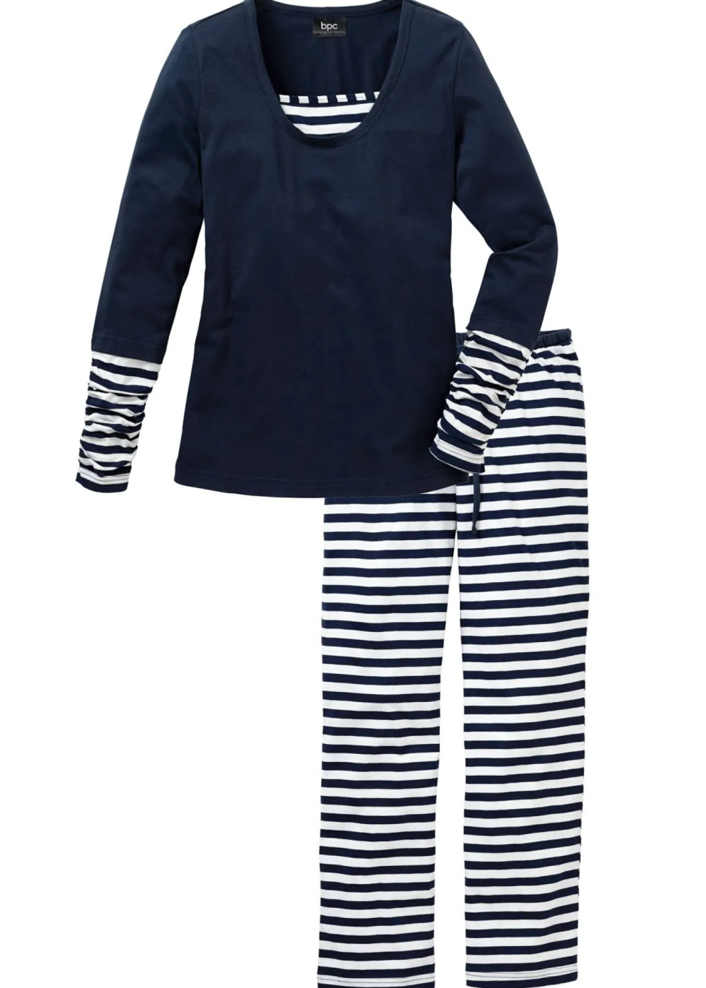 Cómodo pijama con diseño a rayas. Con puños fruncidos.