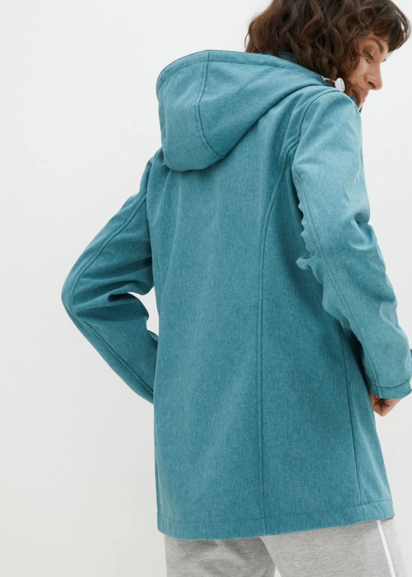 Chaqueta de softshell ajustada con capucha extraíble y bolsillos con cremallera, corte cómodo.
