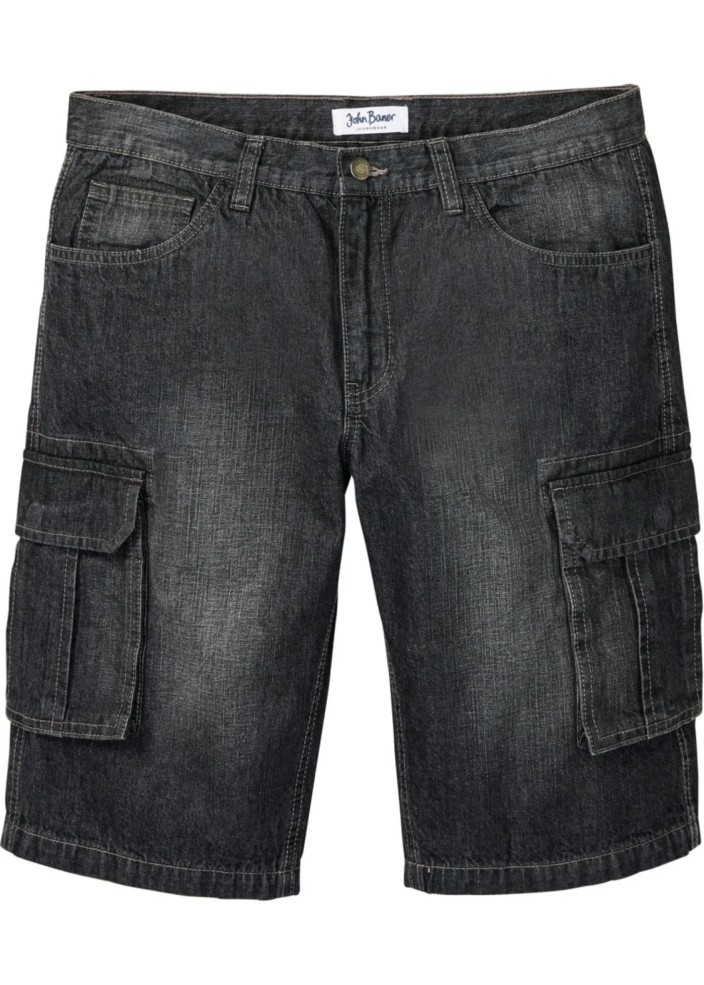 Bermudas vaqueras larga, cargo, con corte casual y ligero lavado.