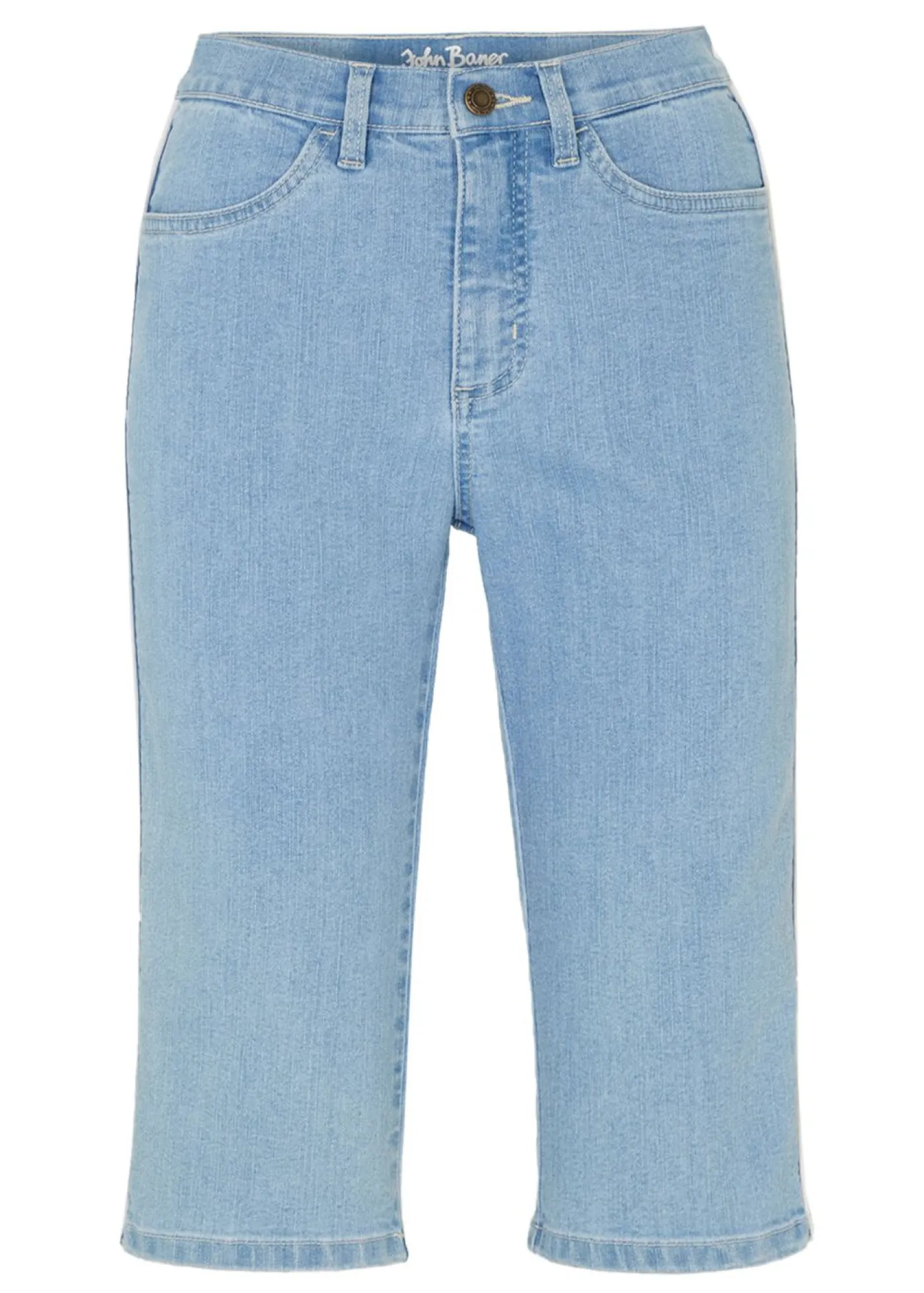 Bermudas vaqueras y estrechas con elástico y rayas laterales. Largo interior de la pierna de aprox. 40,5 cm en talla 42. Se puede lavar a máquina.
