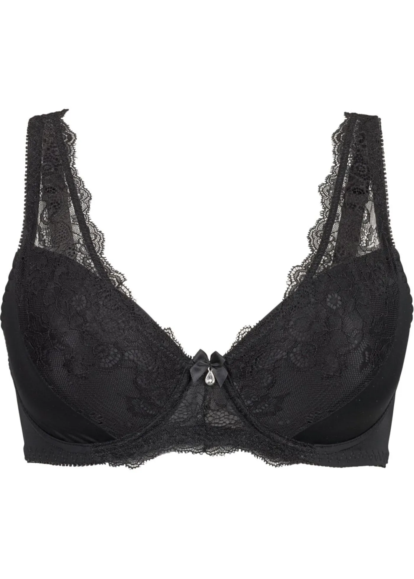 Con aros. Sujetador negro, con encaje y relleno y sin costuras.
