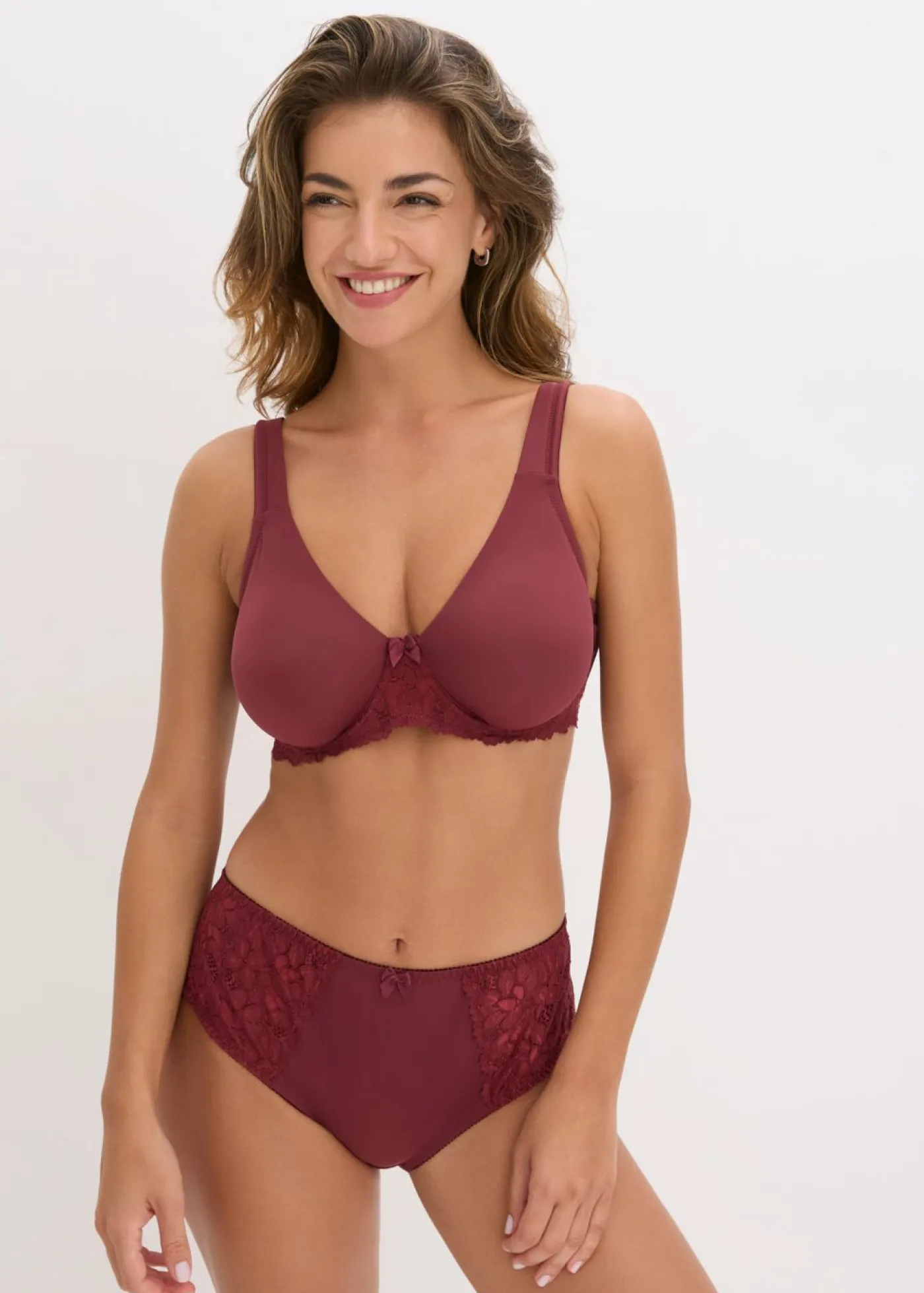 Sujetador sin costuras con encaje floral. Sujetador confort con un toque especial. Gracias a las copas preformadas sin costuras y a los cómodos tirantes ligeramente acolchados, apenas notará el sujetador sobre la piel. Los aros sostienen y dan una fijación perfecta al mismo tiempo. El encaje bajo el pecho y en los lados otorga al sujetador ese algo seguro. Lavar a mano.