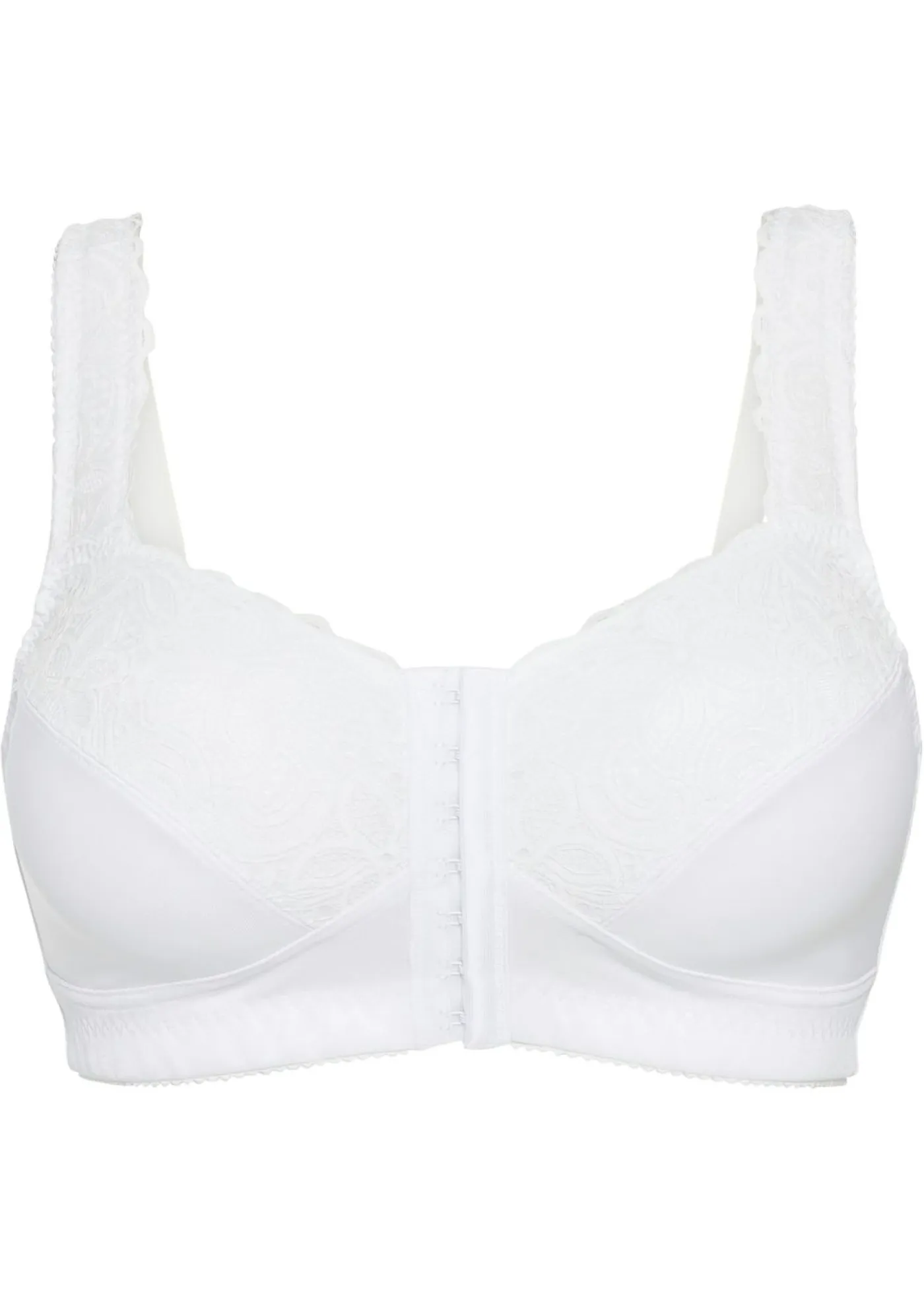 Sujetador con tirantes acolchados y encaje. Sujetador reductor con cierre frontal y un encaje fino en la parte superior de las copas y en los tirantes anchos y acolchados.