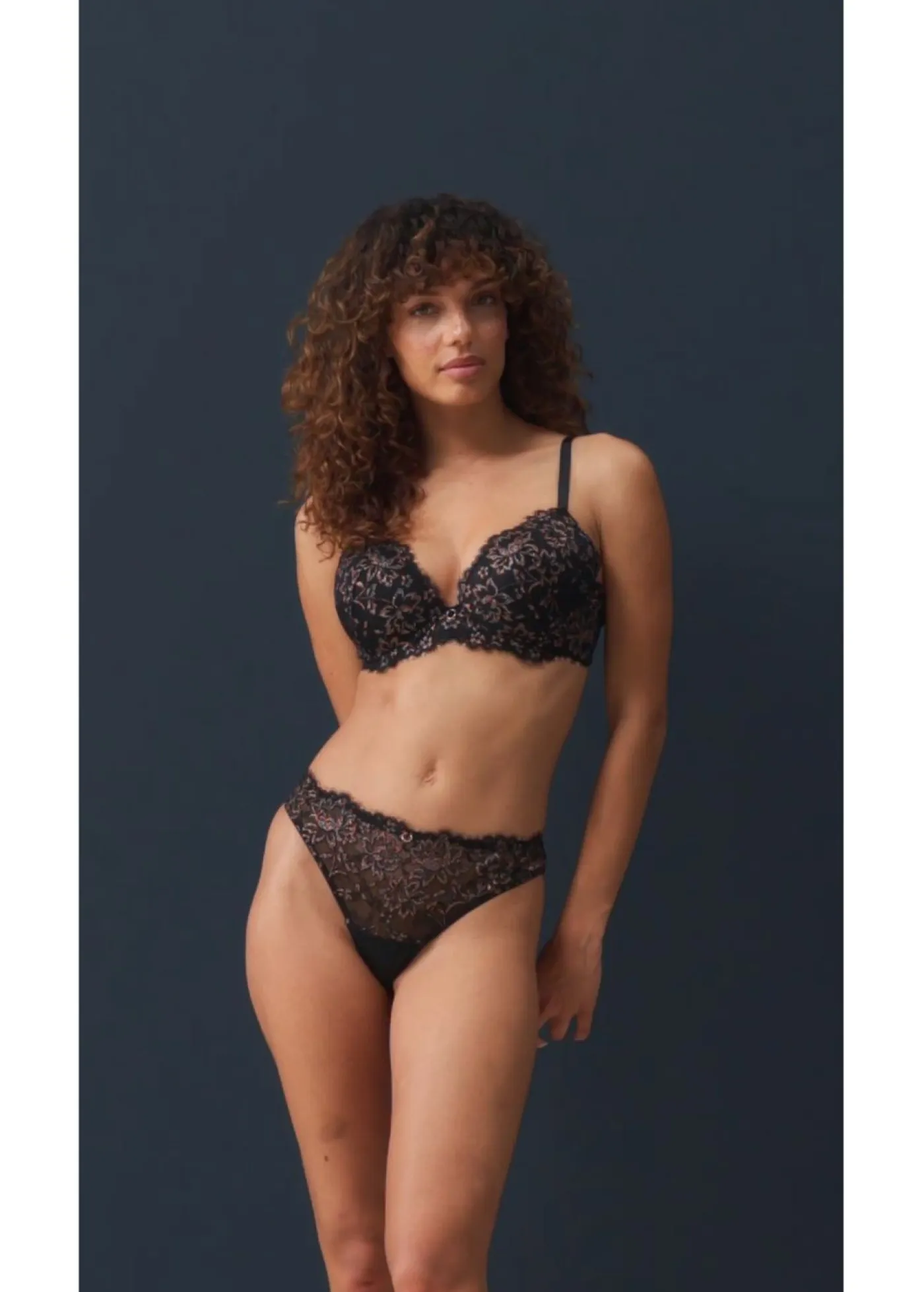| Material | Material externo: 88% poliamida, 12% elastano; Forro: 83% poliamida, 17% elastano; Encaje: 48% poliamida, 32% poliamida (reciclado), 12% elastano, 8% fibras metálicas |