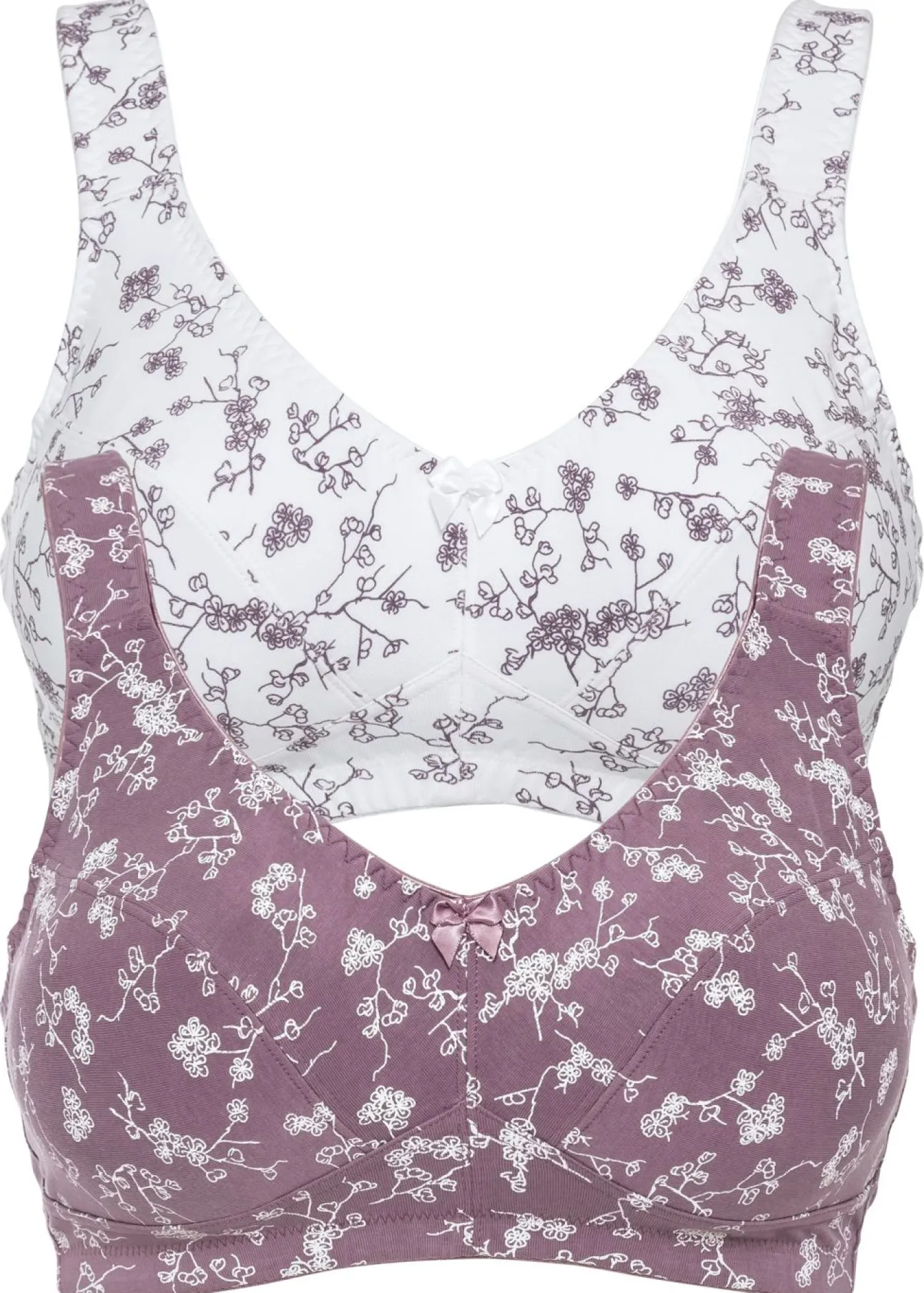 Cómodo sujetador con un bonito estampado integral. Sujetador sin aros en un atractivo paquete doble. Con un material de algodón cómodo de llevar. Con un estampado de flores integral. Los tirantes ligeramente acolchados alivian los hombros y ofrecen una agradable comodidad de uso.