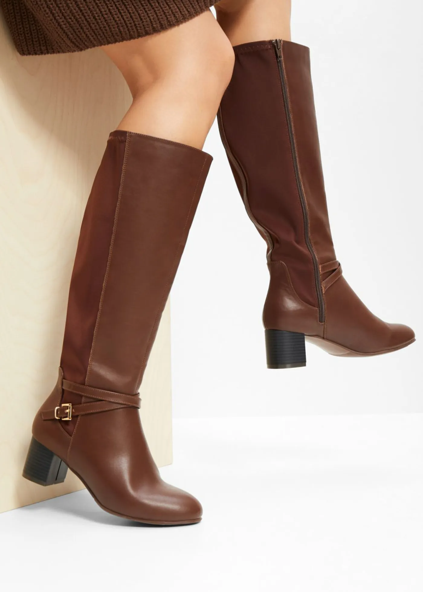 Botín atemporal de caña ancha con hebilla decorativa.