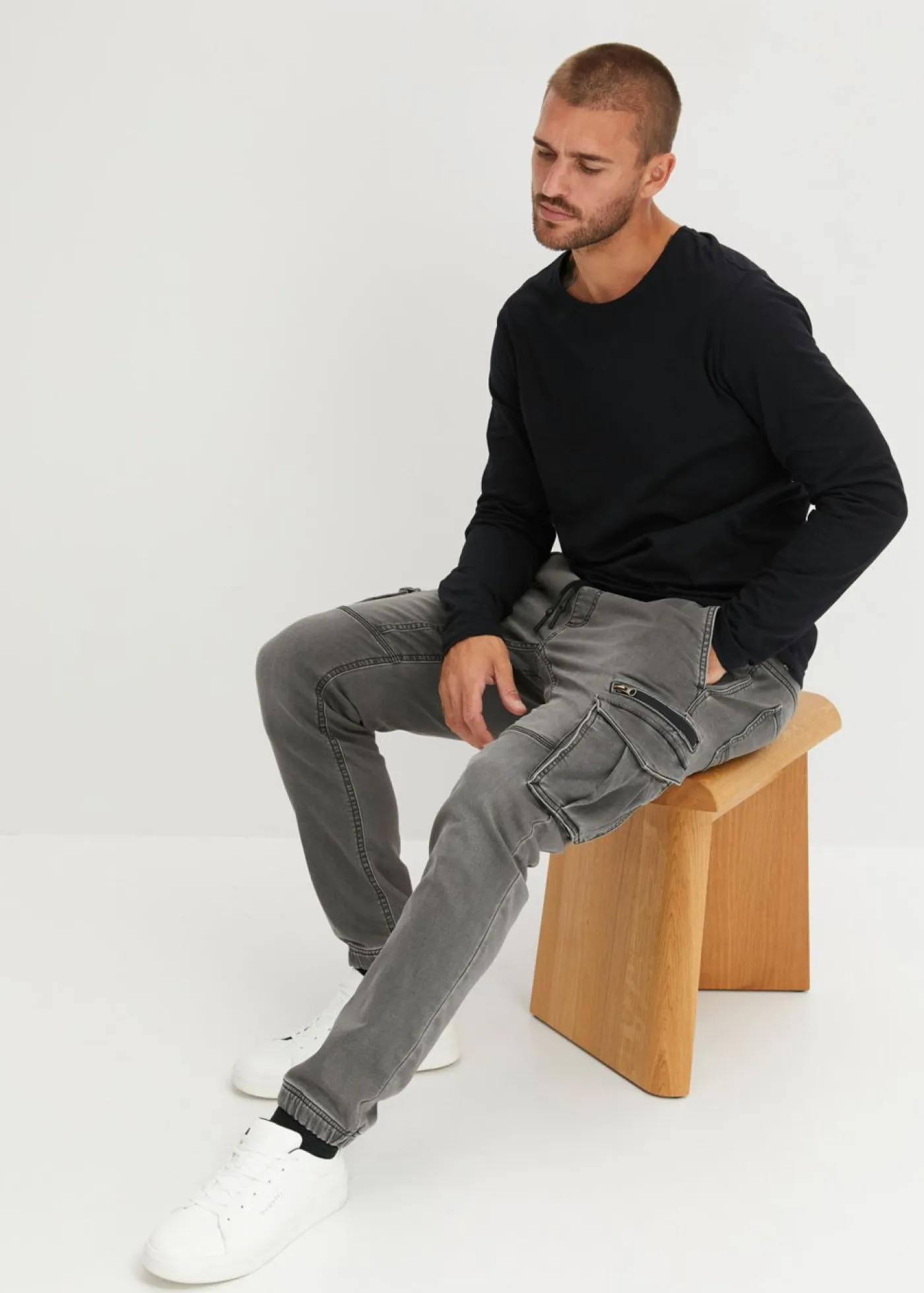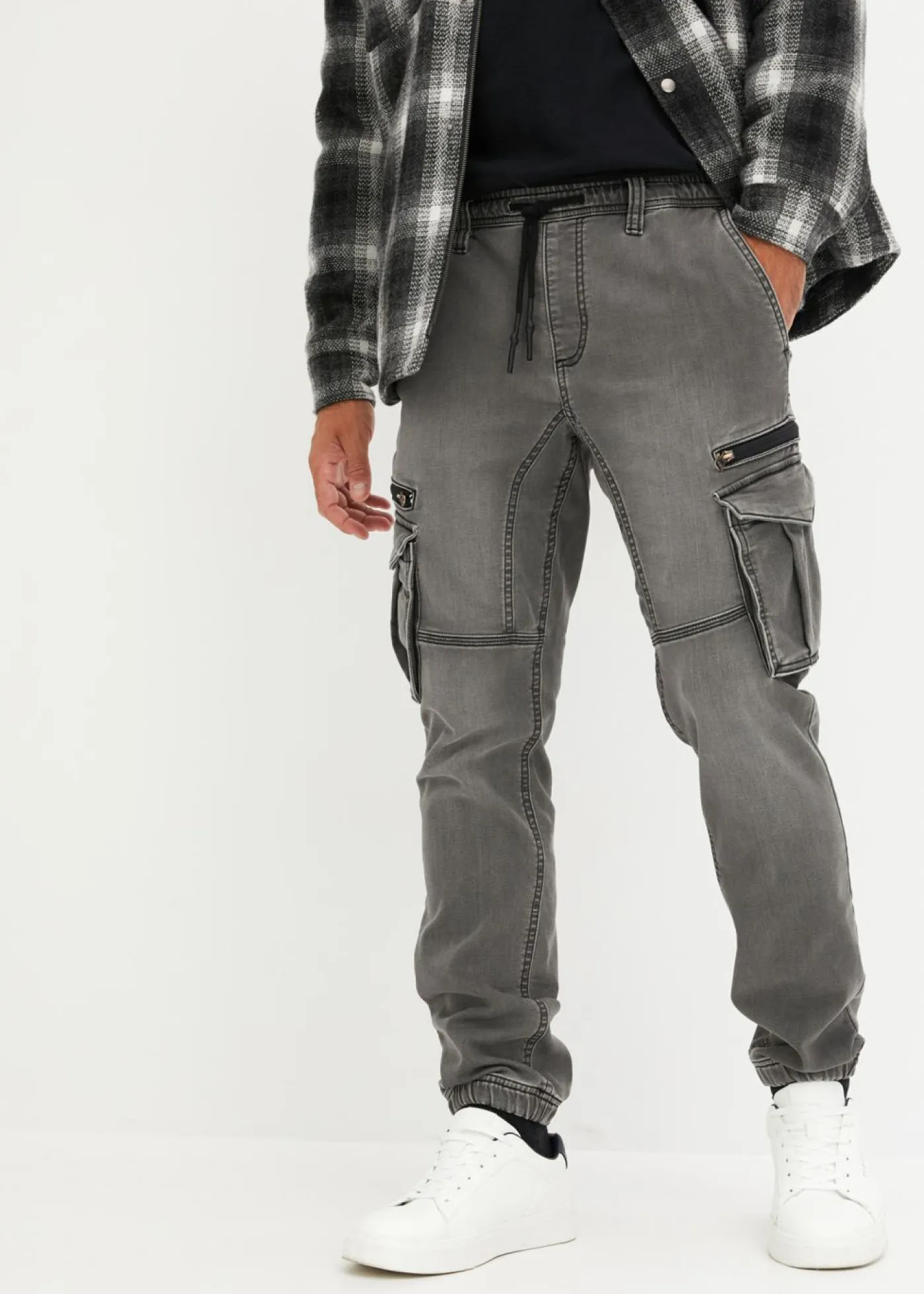 Vaqueros informales con corte regular, forma recta y cinturilla elástica