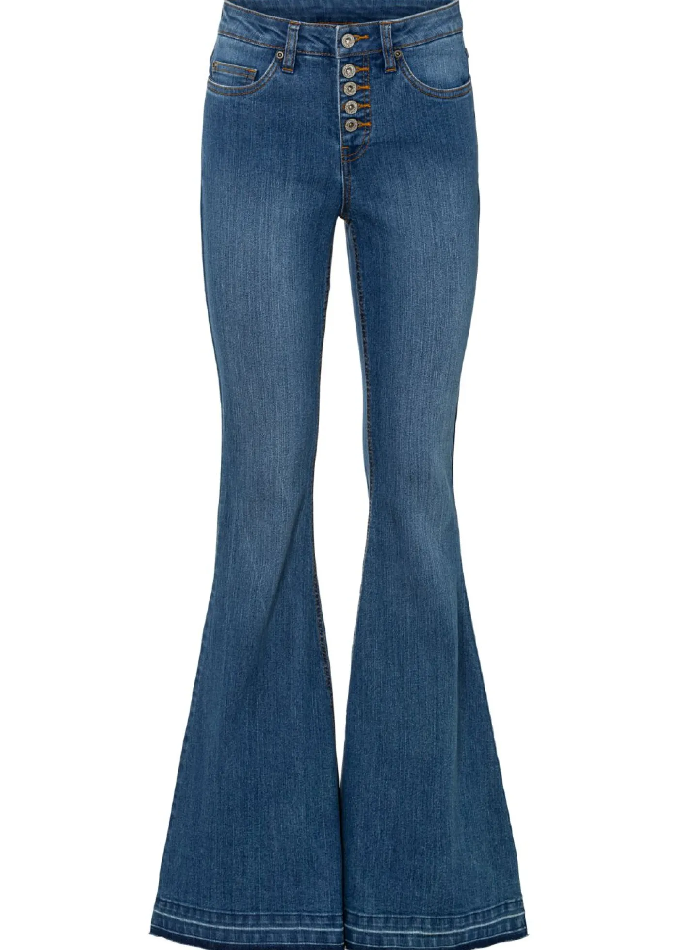 Vaqueros acampanados con dobladillo abierto, Largo. regular