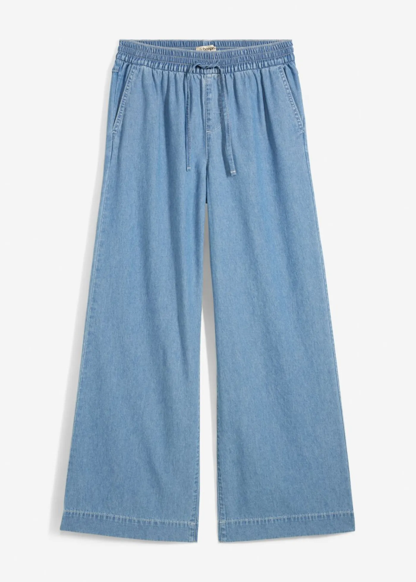 Vaqueros anchos con cinturilla elástica. Largo interior de la pierna de aprox. 78,5 cm en talla 42. Se puede lavar a máquina.