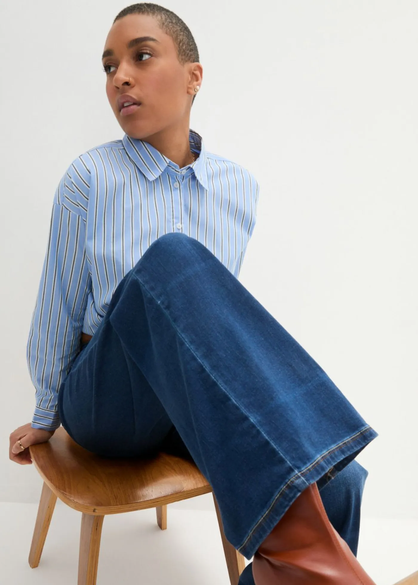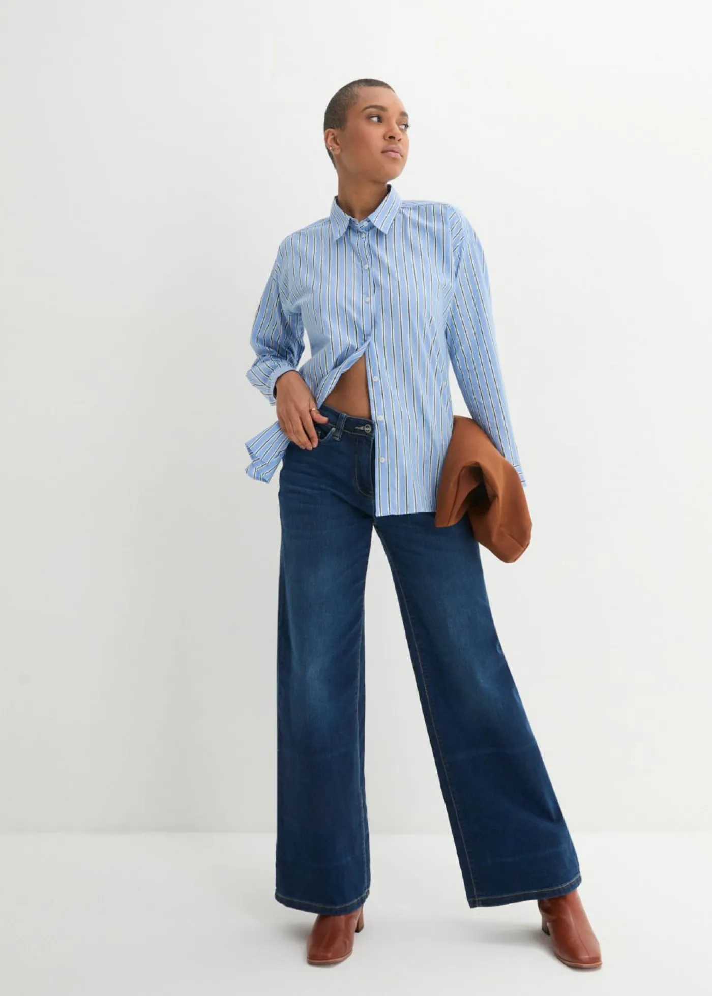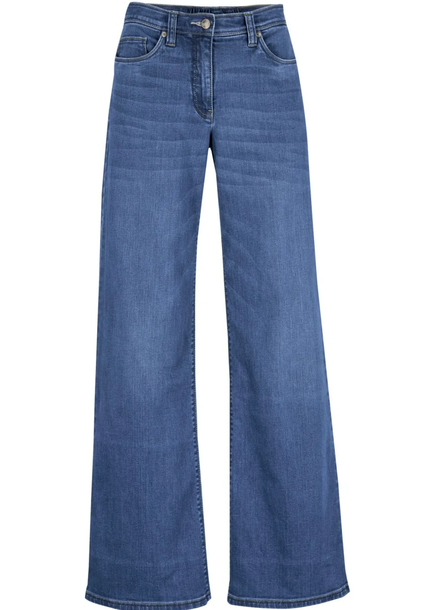 Vaqueros con gran comodidad de uso gracias a su cintura cómoda y su pernera extra ancha y de material elástico. Largo interior de la pierna de aprox. 81 cm en talla 42. Se puede lavar a máquina.