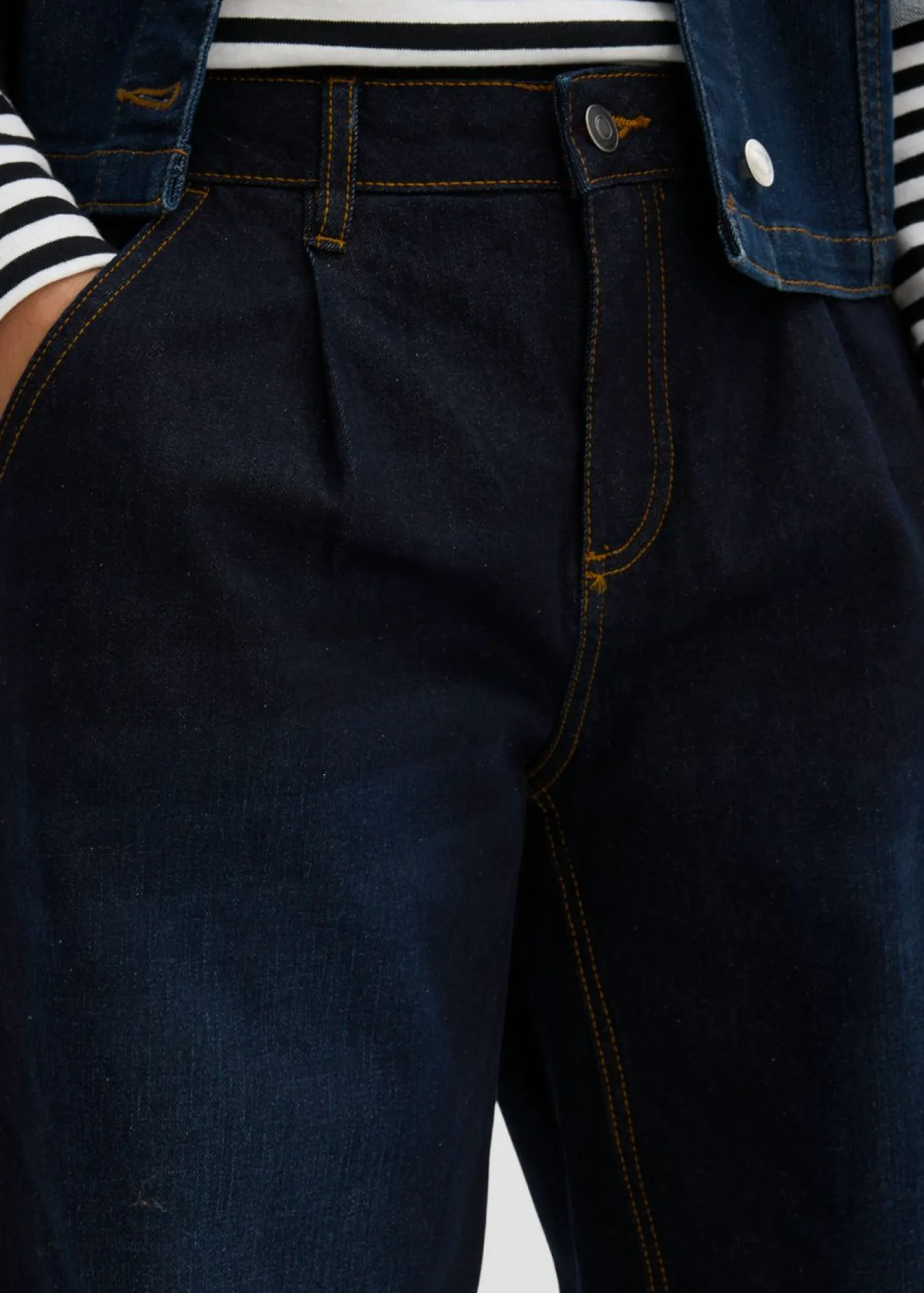 Vaqueros de corte ancho, estilo casual con pliegues.