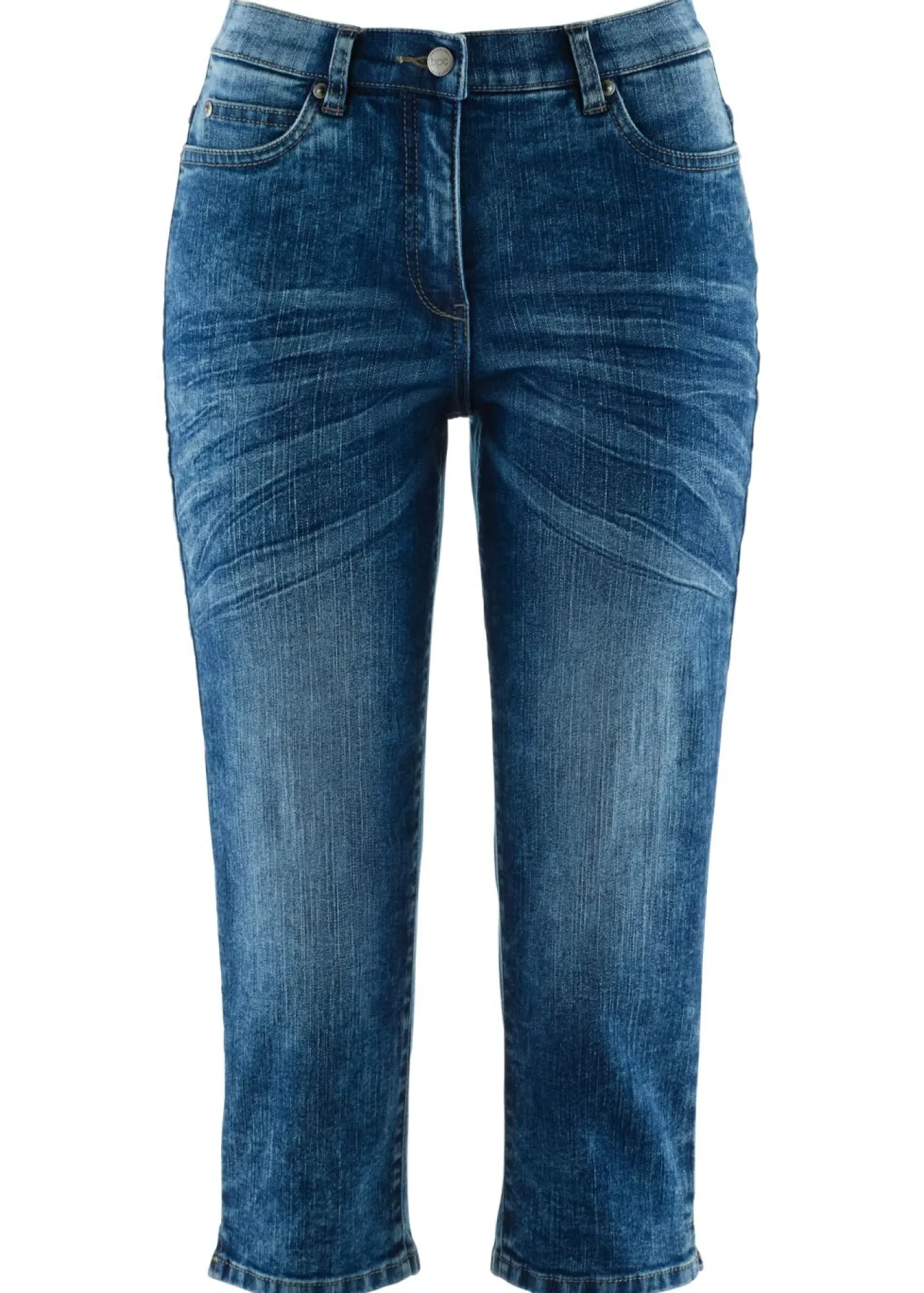 Bonitos vaqueros capri con cinturilla parcialmente elástica. Largo interior de la pierna de aprox. 49 cm en talla 42. Se puede lavar a máquina.
