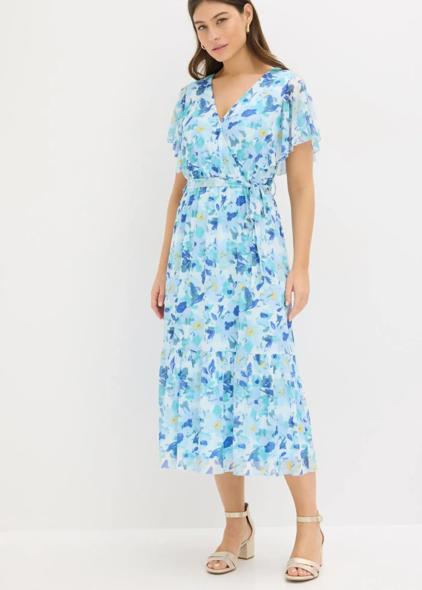 Vestido midi de malla suave con estampado de flores y forro.