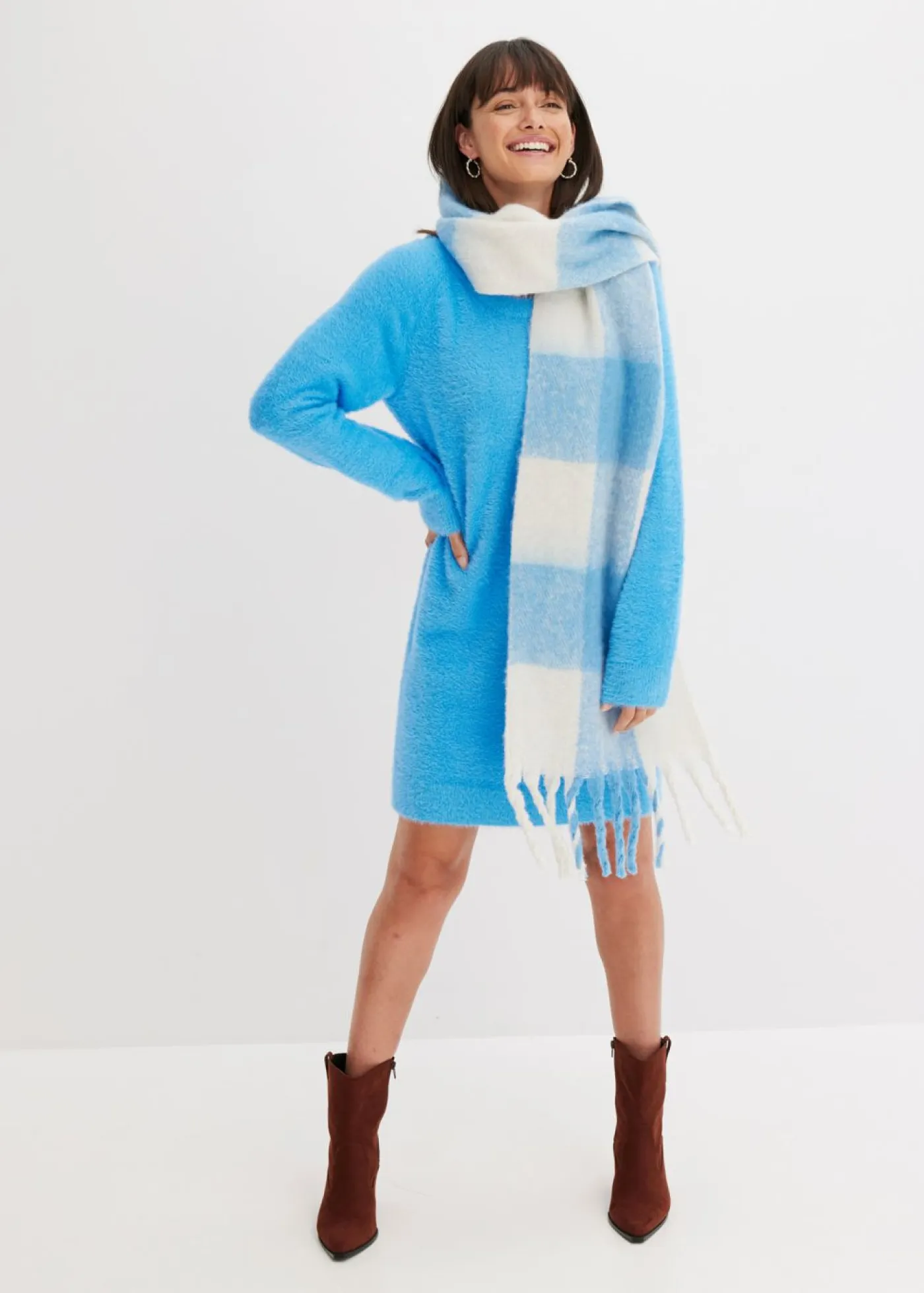 Moderno vestido corto de punto con mangas raglán. Largo de aprox. 88 cm en talla 40/42. Se puede lavar a máquina.