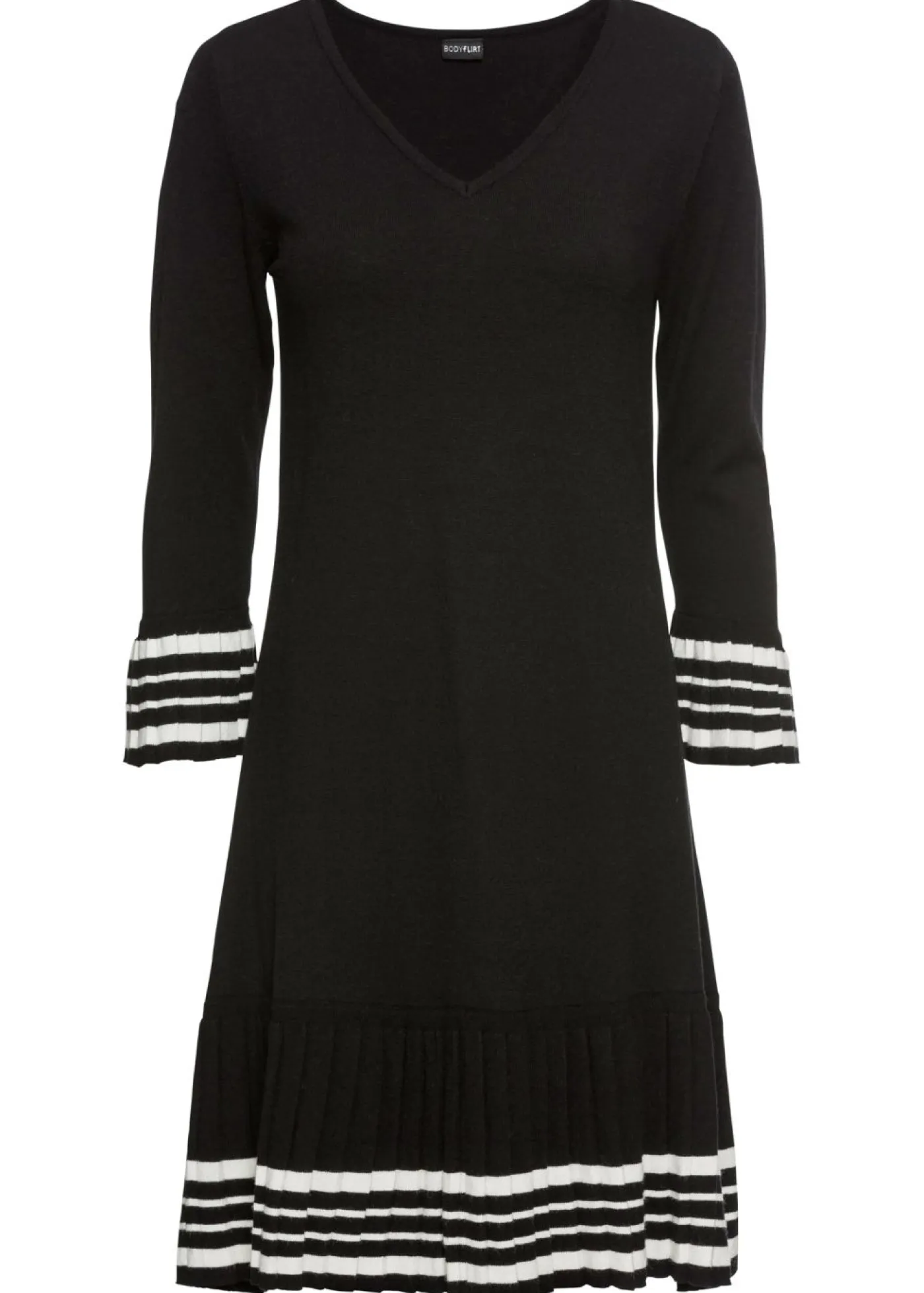 Moderno vestido con falda plisada y diseño de rayas. Un divertido vestido de punto de BODYFLIRT. El vestido de punto lleva un plisado en la falda y los puños. Largo de aprox. 90 cm en talla 36/38.