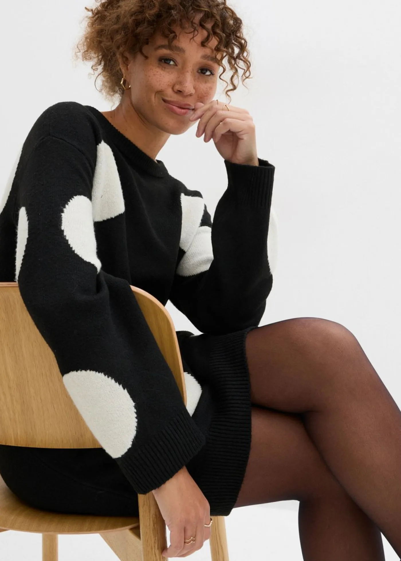 Moderno vestido holgado de punto con lunares.
