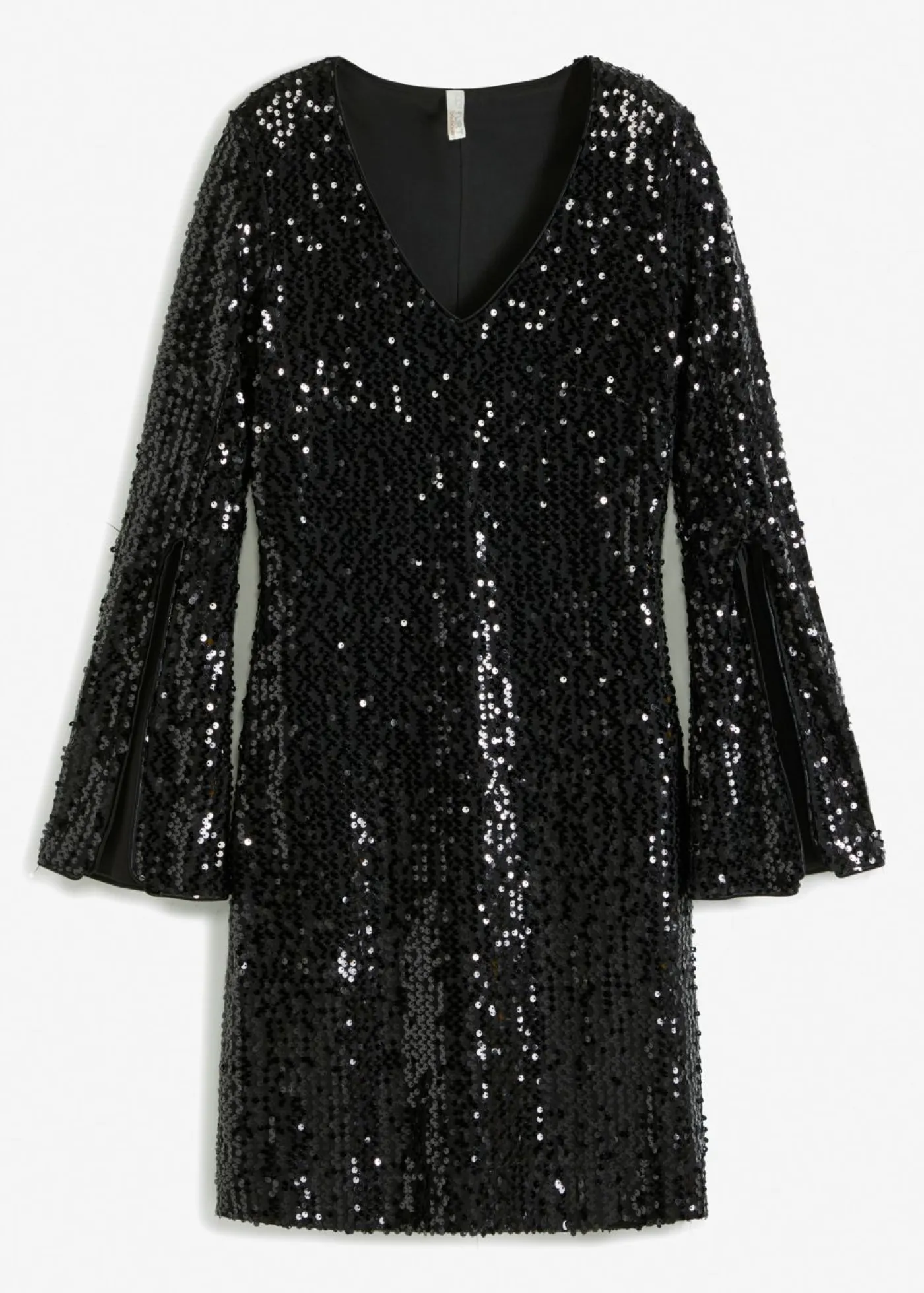Vestido de lentejuelas con mangas de trompeta, Largo regular