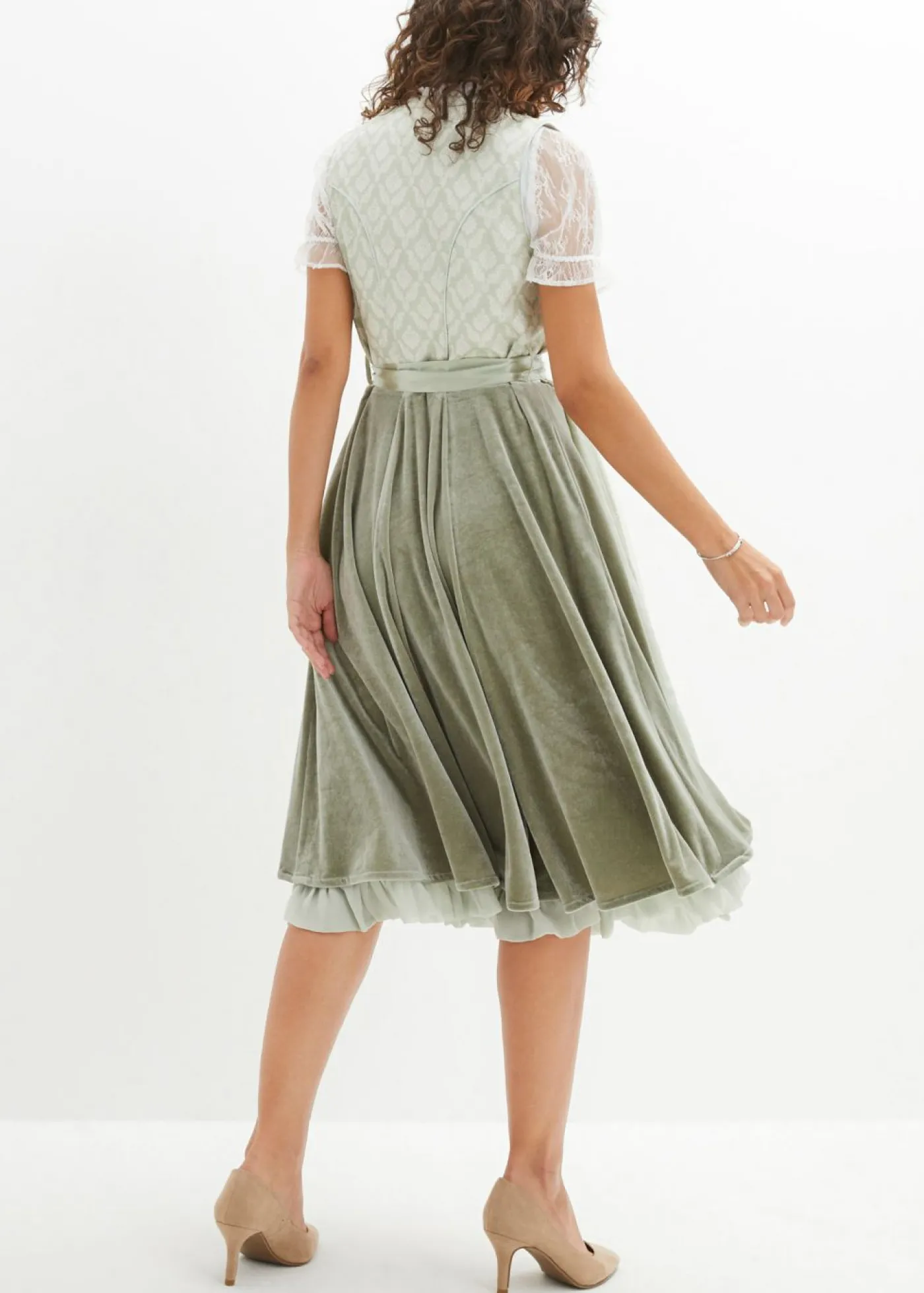 Dirndl de alta calidad confeccionado en elegante jacquard con tapeta de botones decorativa y bonitos bordados.