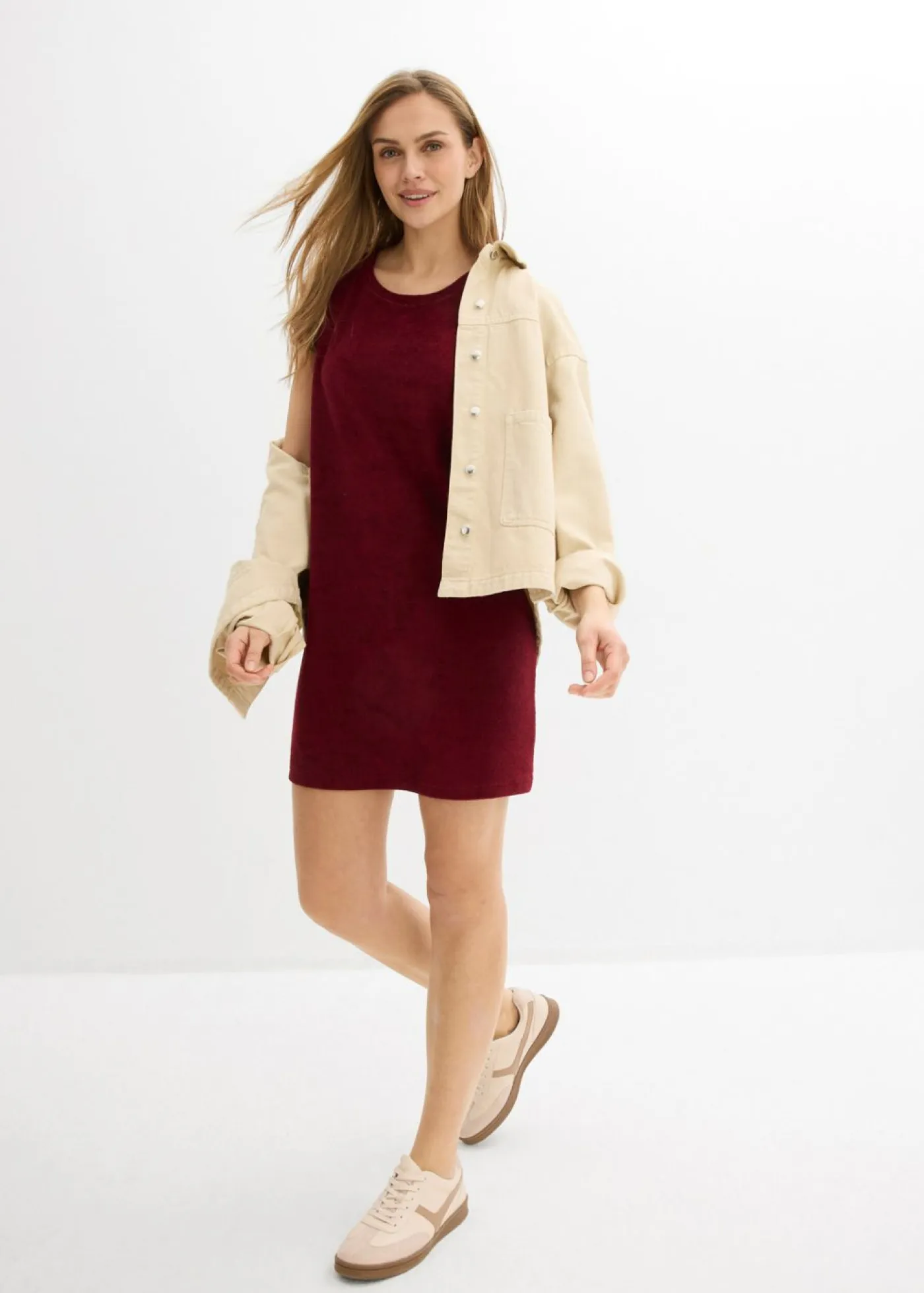 Vestido de felpa con manga corta. Largo de aprox. 92 cm en talla 40/42. Se puede lavar a máquina.