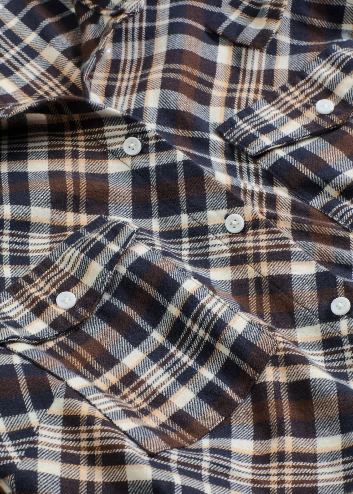 Favorecedor vestido de franela de algodón puro con cuello alto tipo camisa. Largo total de aprox. 108 cm en talla 42. Se puede lavar a máquina.