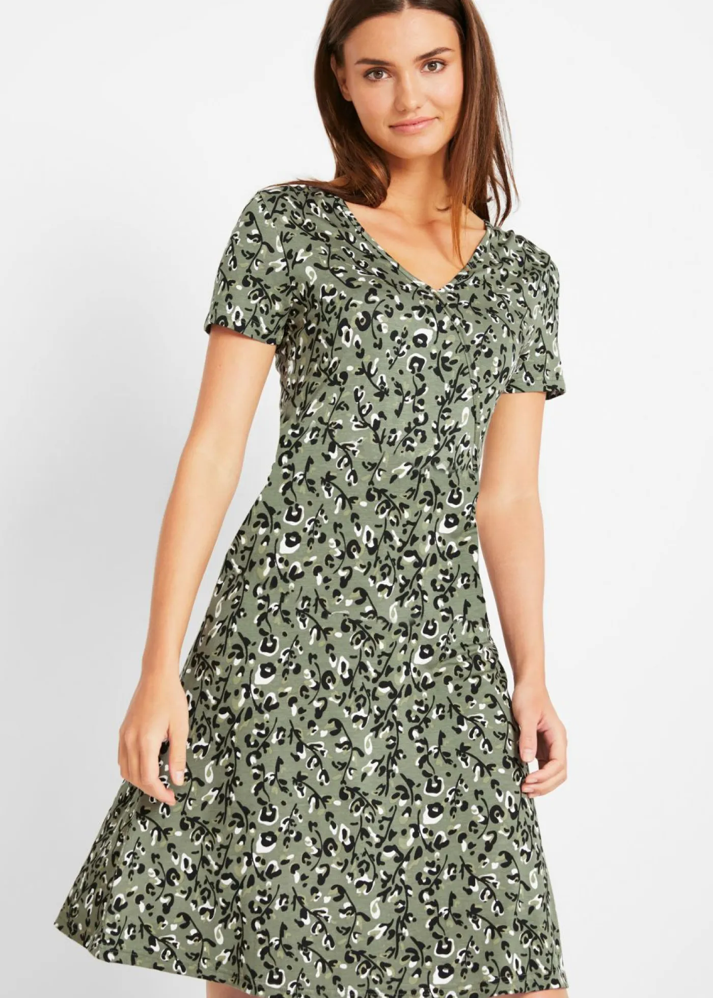 Vestido camisero con efecto cruzado. Largo total de aprox. 96 cm en talla 40/42. Se puede lavar a máquina.