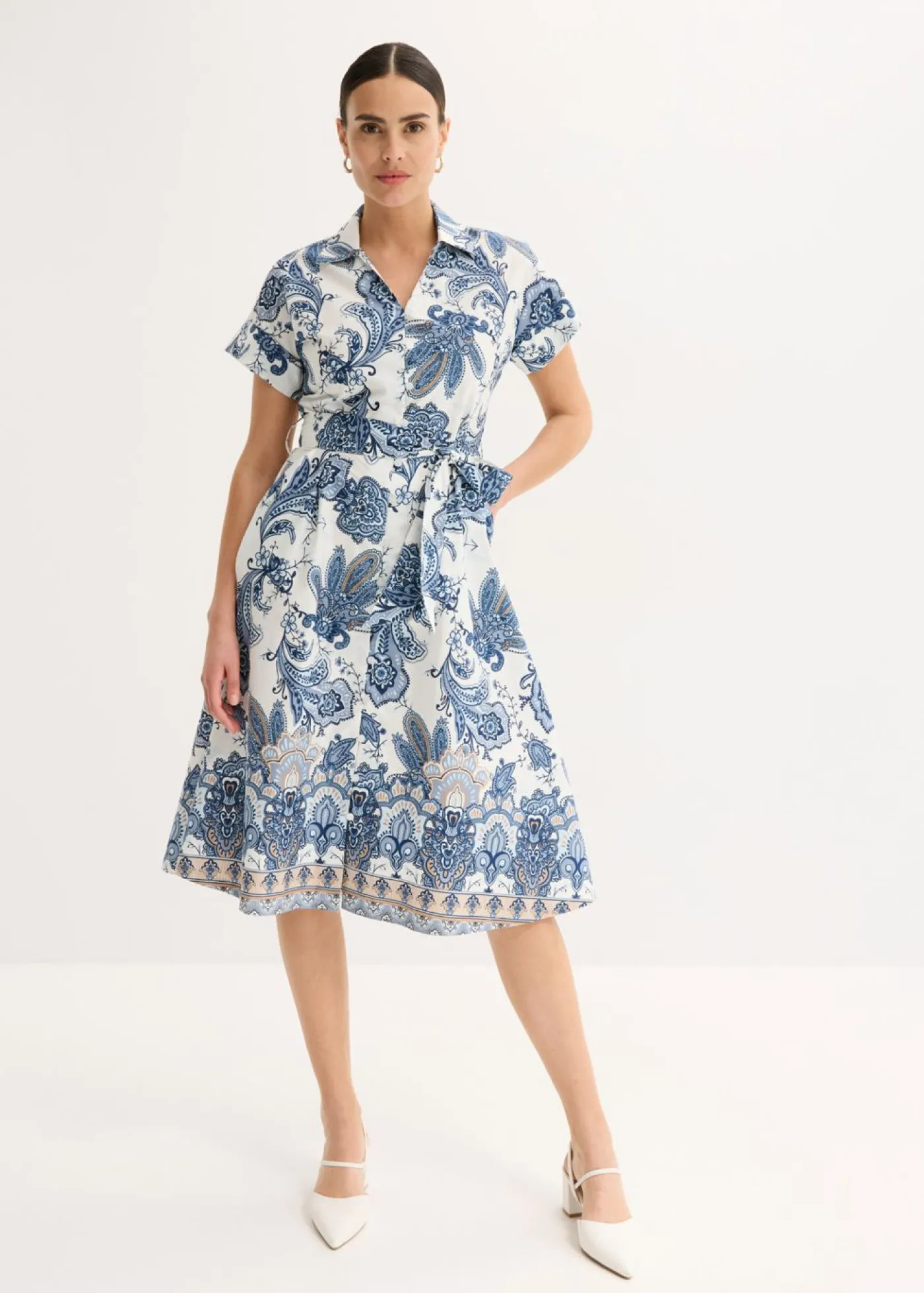 Elegante vestido estampado con cinta para anudar.