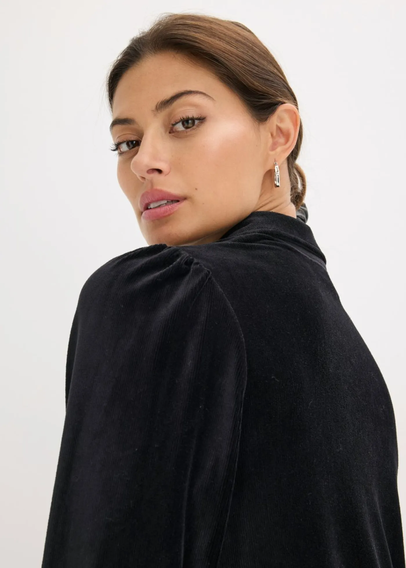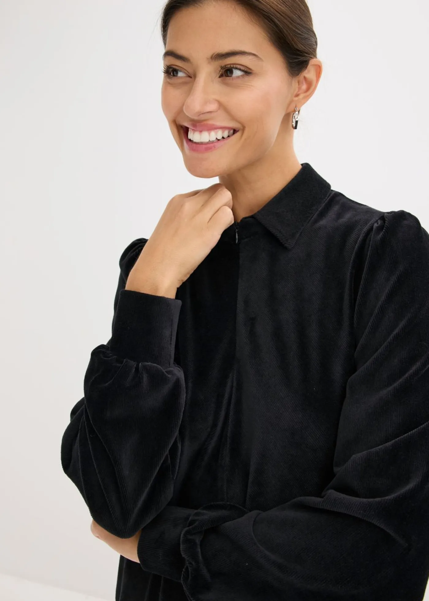 Con cuello y cremallera en el escote.