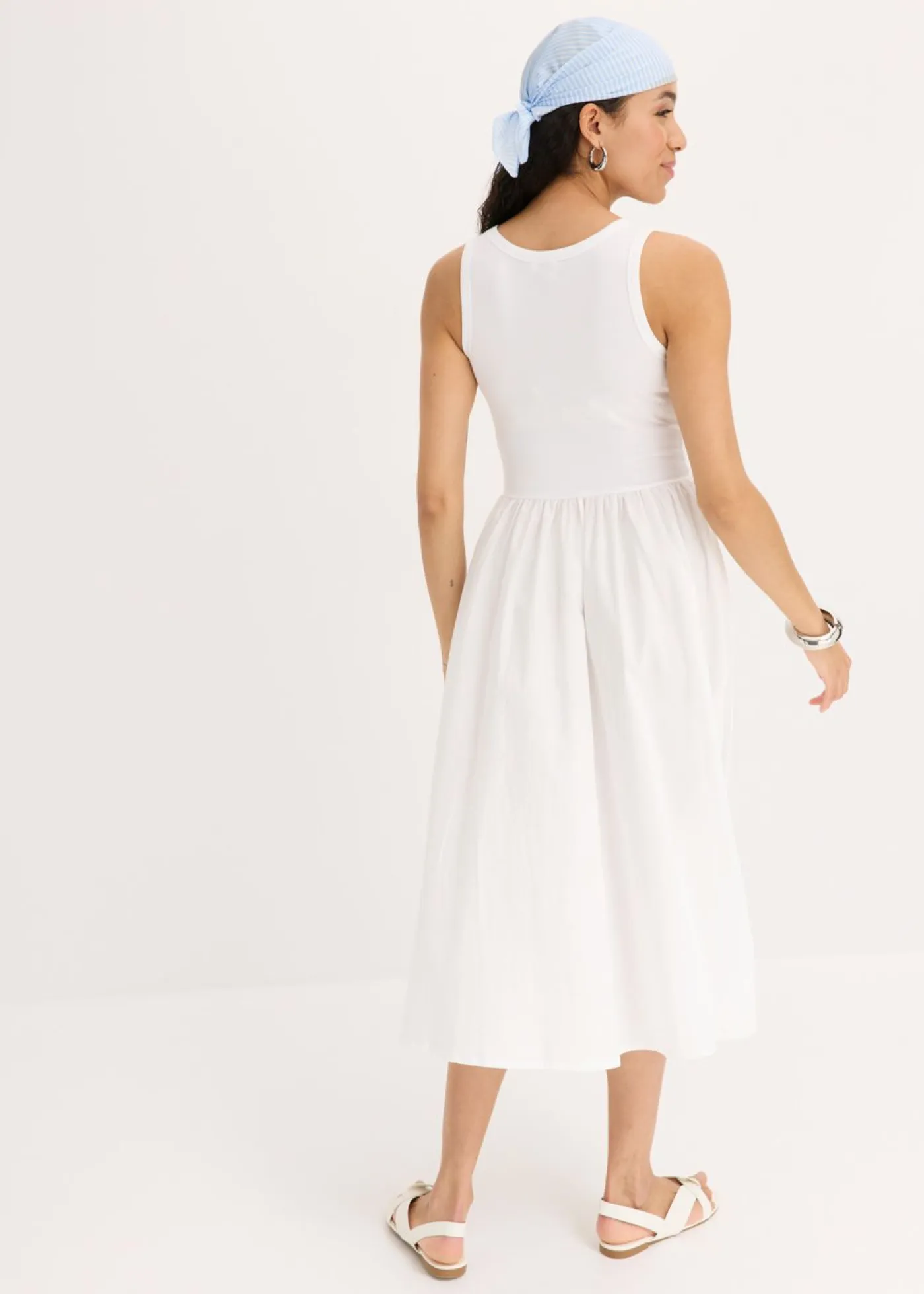 Vestido largo en mezcla de materiales.