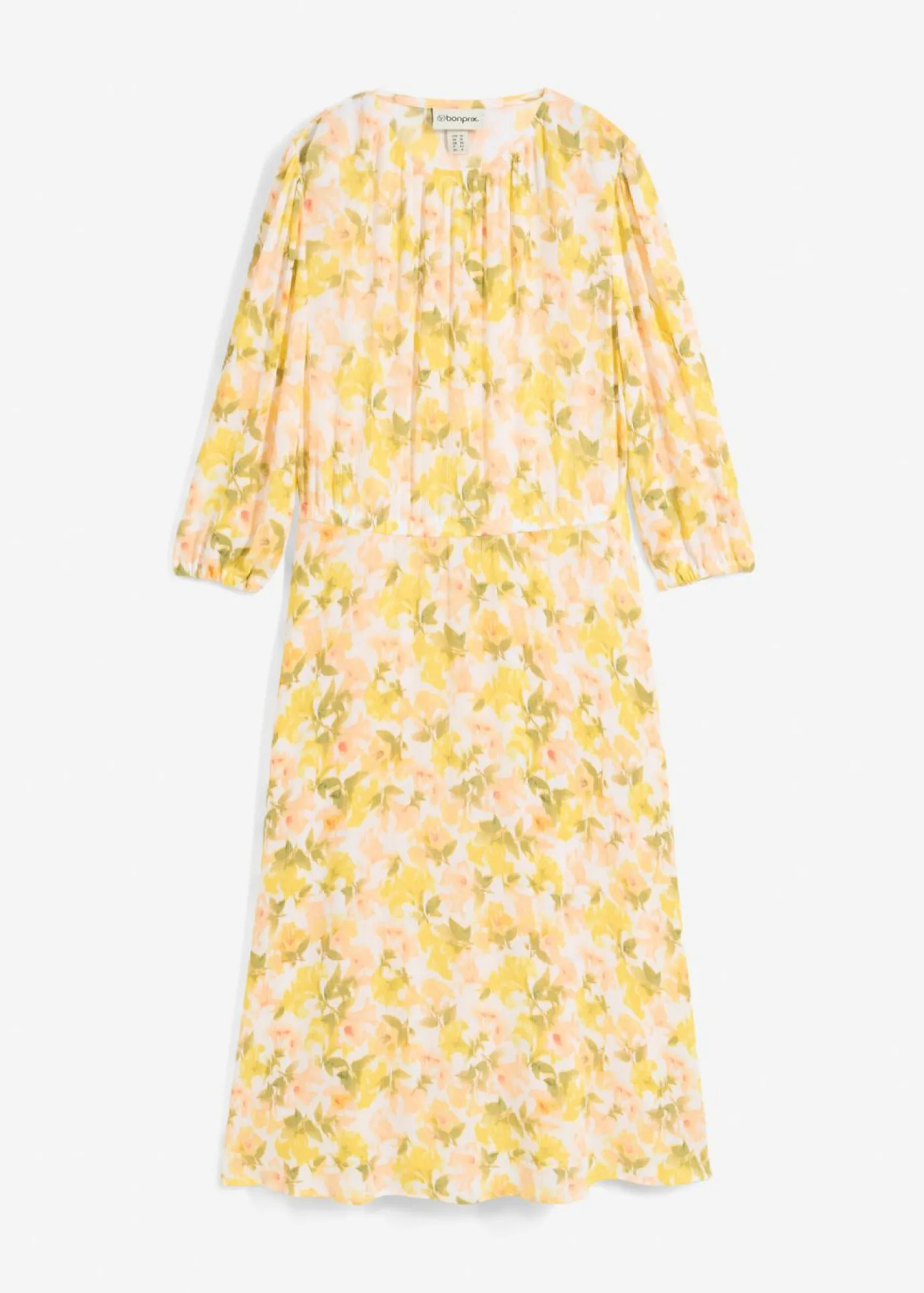 Acampanado con mangas de globo. Largo total de aprox. 114 cm en talla 42. Se puede lavar a máquina.