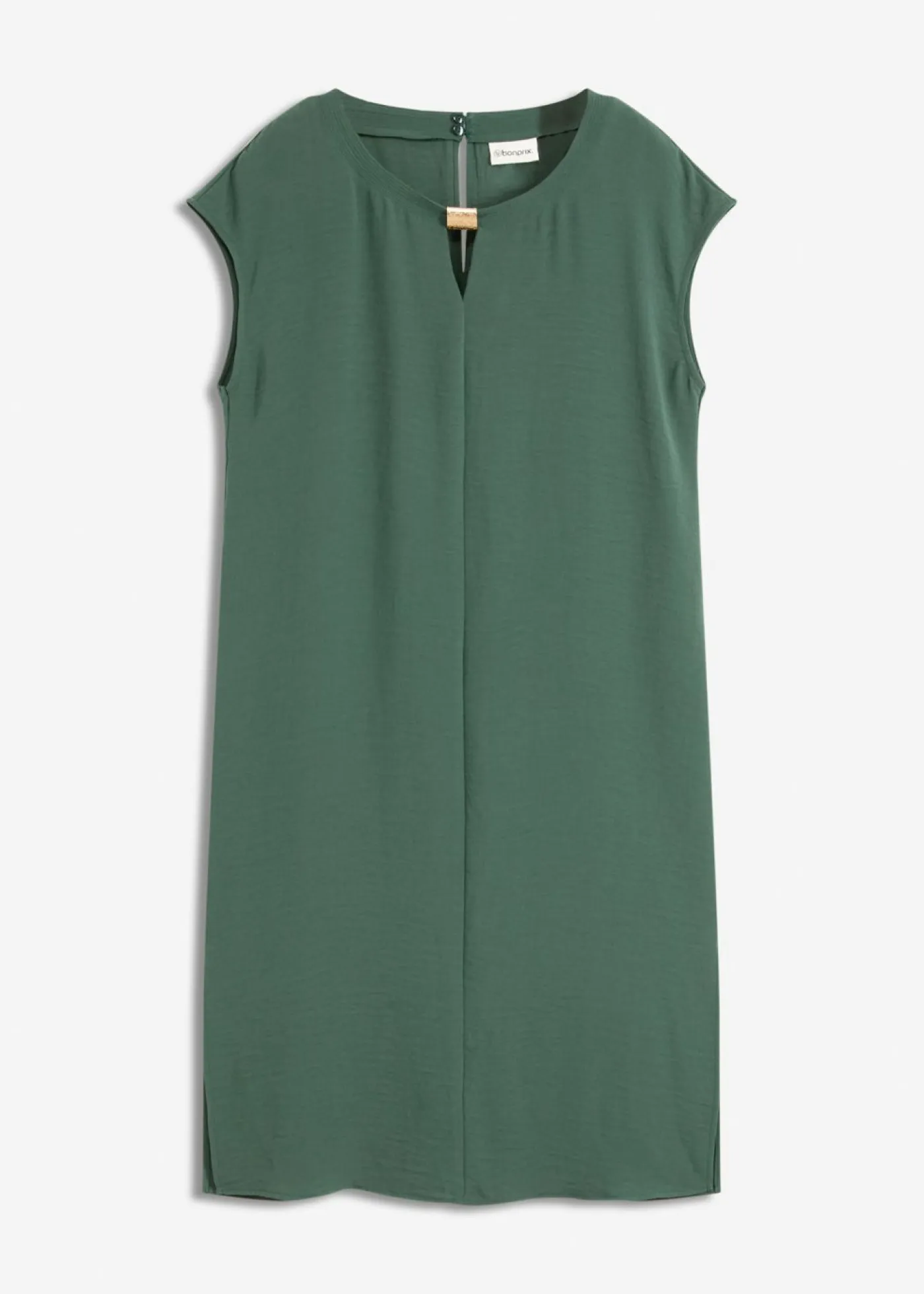 Vestido elegante de tejido estructurado con anilla decorativa.