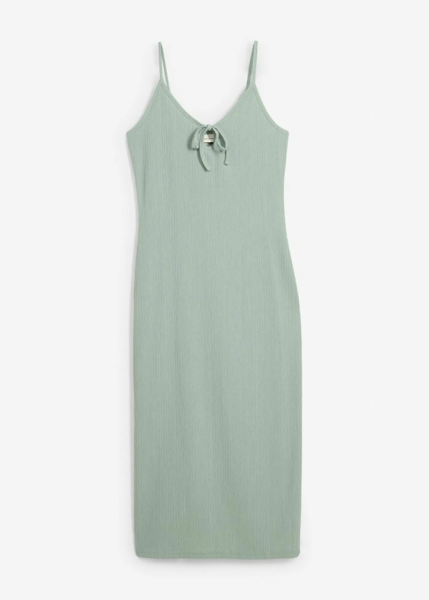 Moderno vestido midi de crepé ligero con detalle de lazo en el escote.