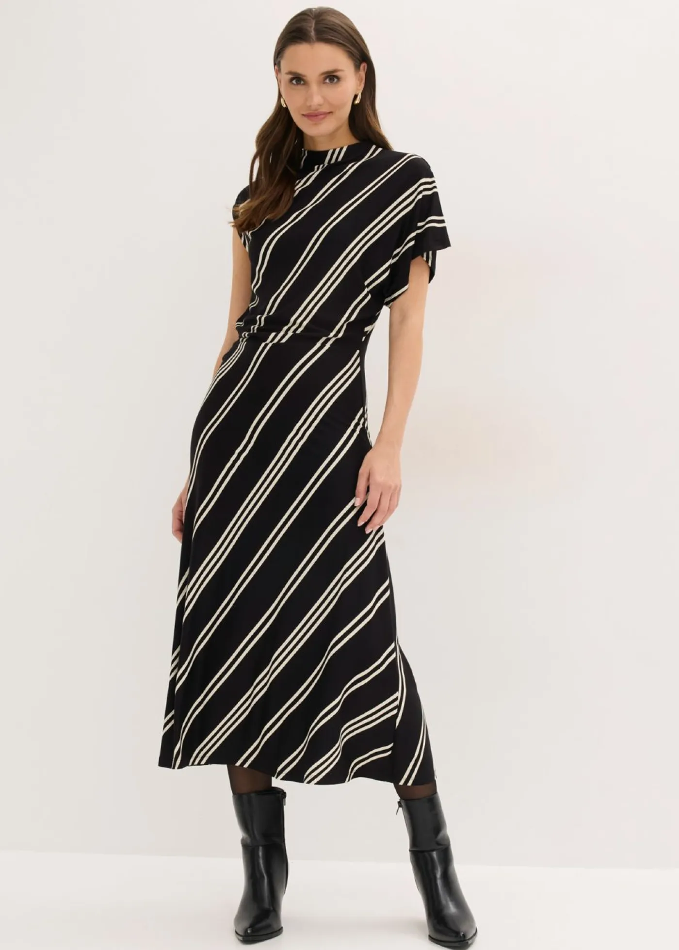 Vestido midi de mezcla de viscosa suave con estampado moderno.