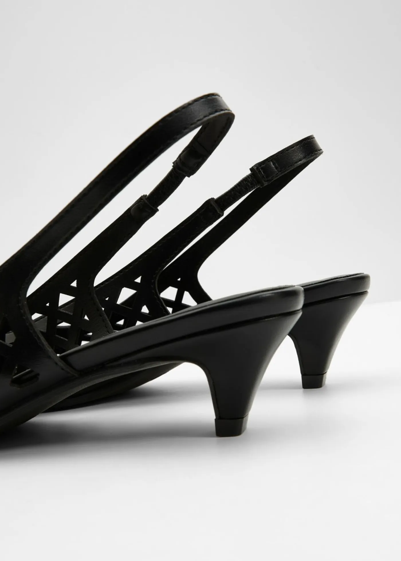 Modernos zapatos con tacón y talón al descubierto.