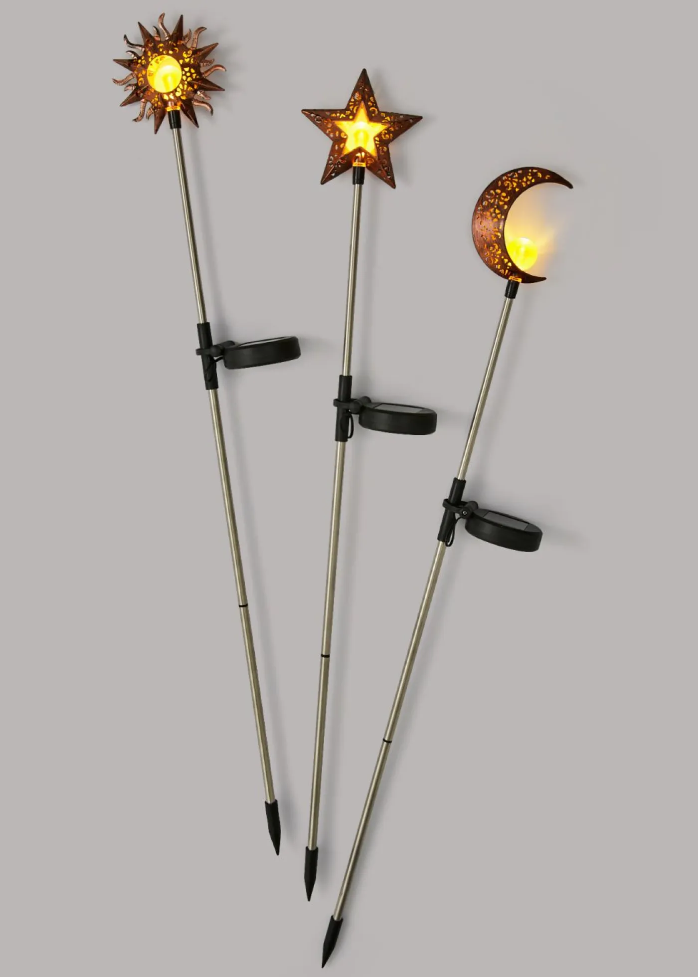 Tres románticas luces solares para el jardín.