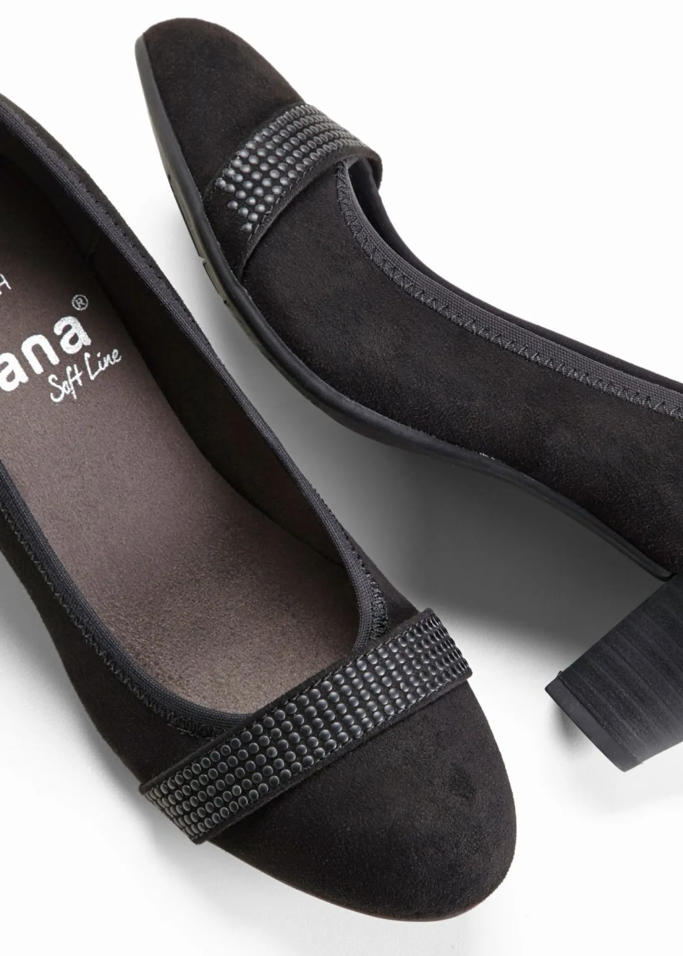 Cómodos zapatos de tacón Jana de ancho cómodo con rayas decorativas. Elegantes zapatos de tacón de la marca Softline by Jana que demuestran ser un verdadero todoterreno para todos los días. Fáciles de poner, combinan con muchos atuendos. El artículo tiene un ancho de zapato H, que es cómodo para pies ligeramente más fuertes.