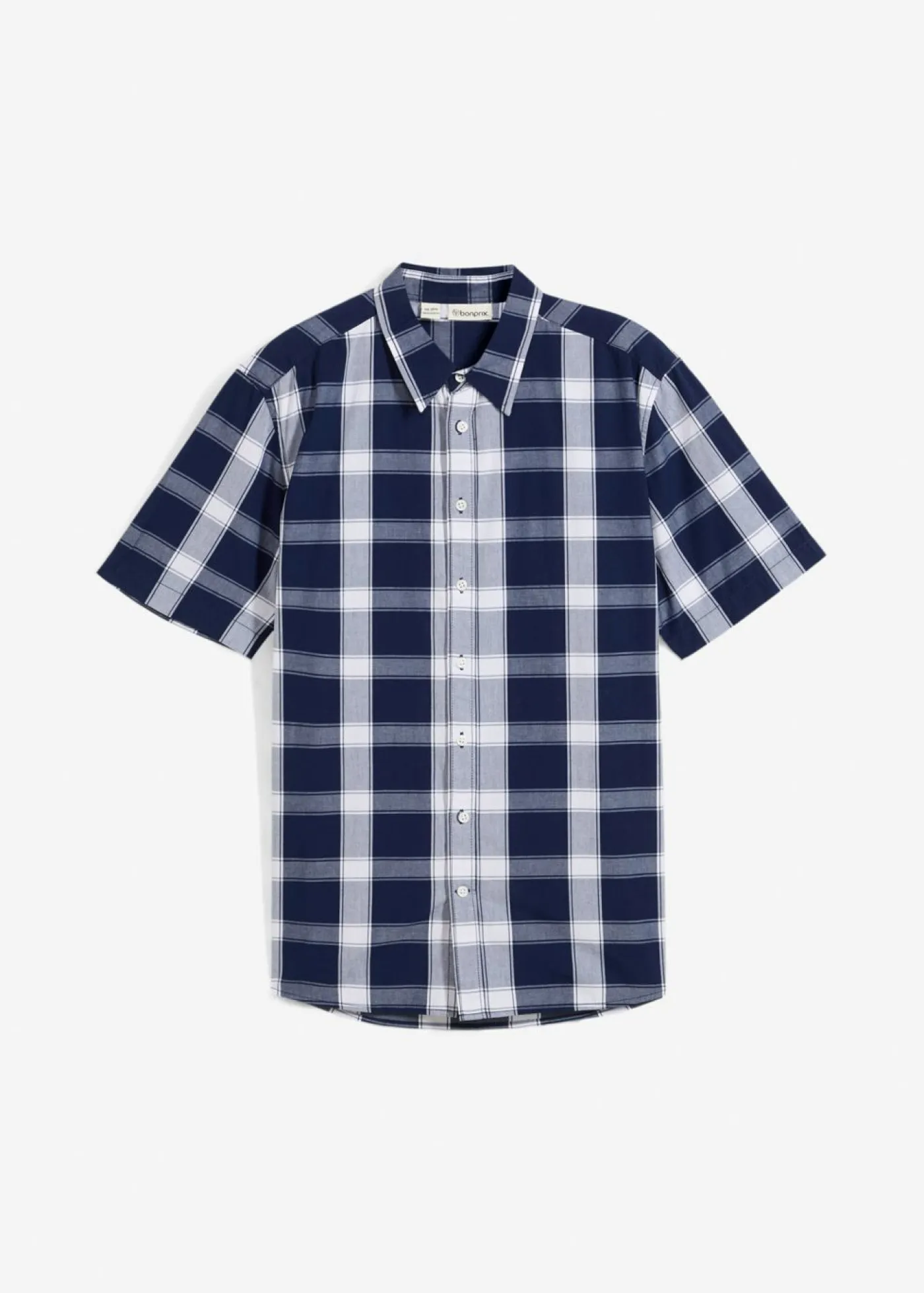 Camisa de manga corta con moderno estampado de cuadros. Con dobladillo redondeado. Se puede lavar a máquina.