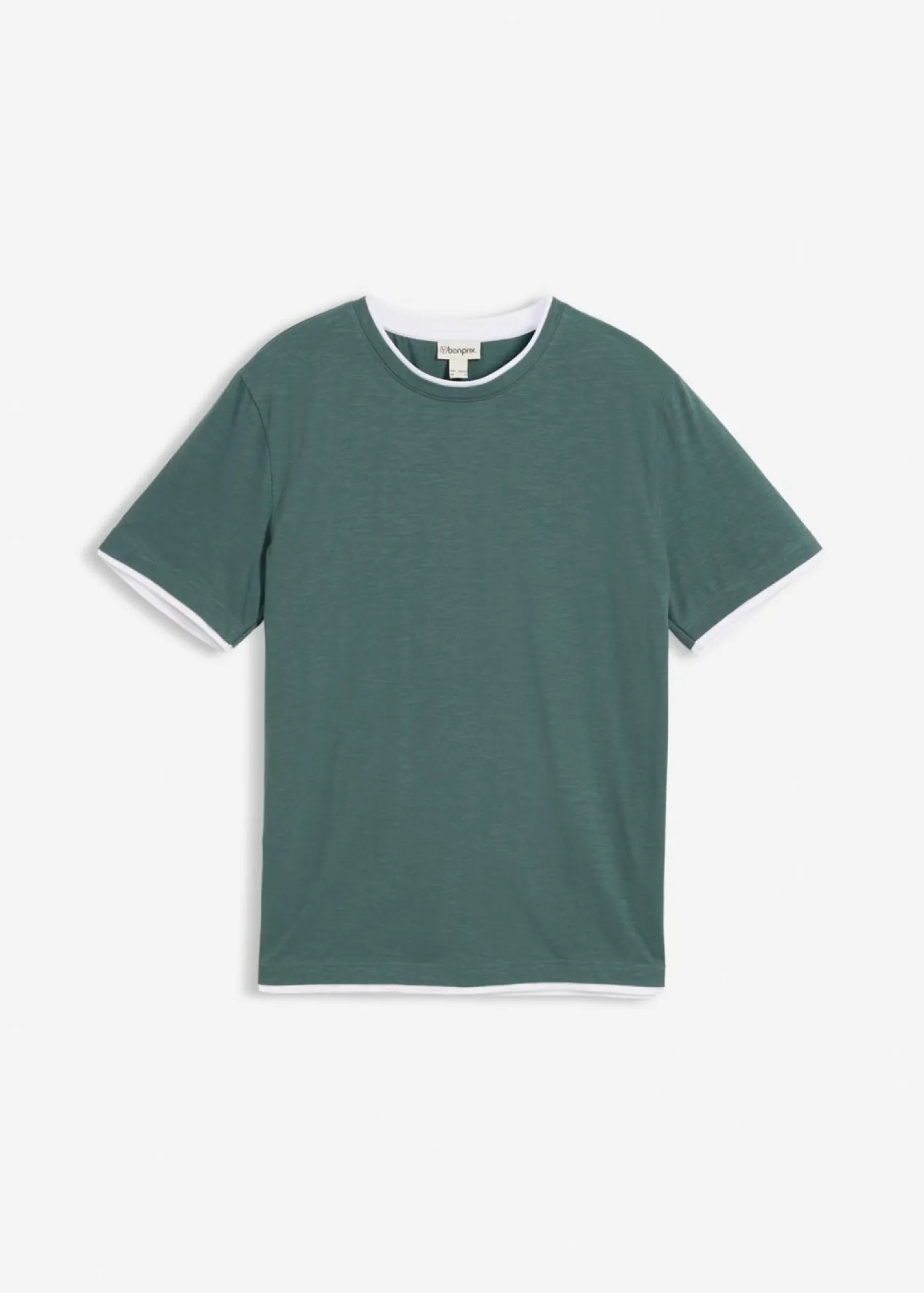 Moderna camiseta con corte regular, moderno aspecto 2 en 1 y detalles en contraste.