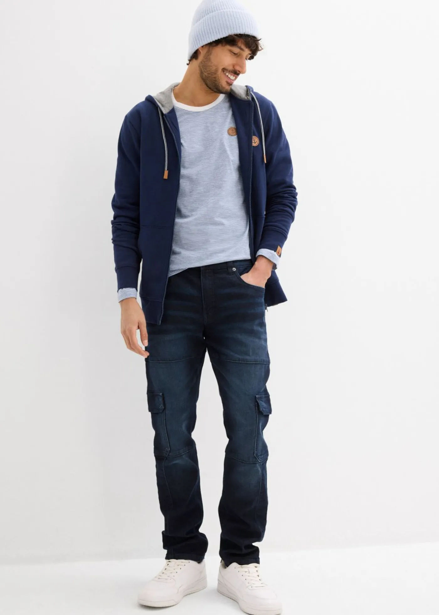 Moderna camiseta de manga larga con corte regular y rayas finas.