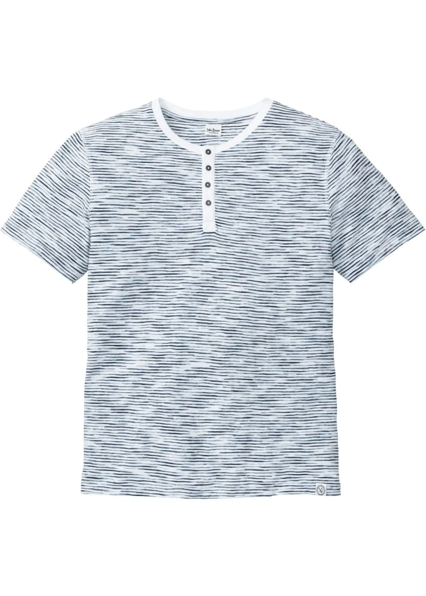 Camiseta con estampado de rayas irregulares. Con cuello blanco.