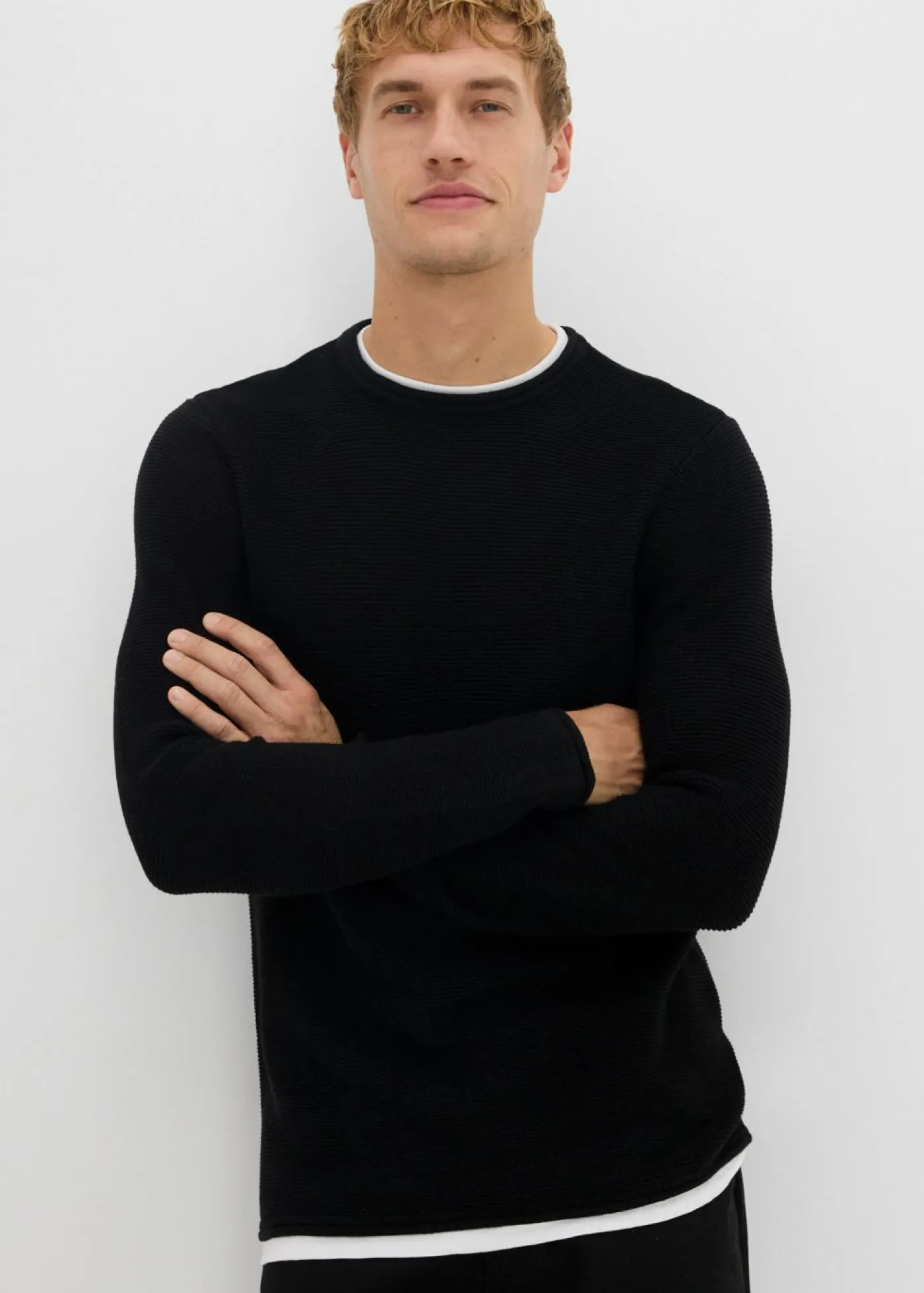 Jersey estructurado con aspecto 2 en 1, confeccionado en mezcla de algodón