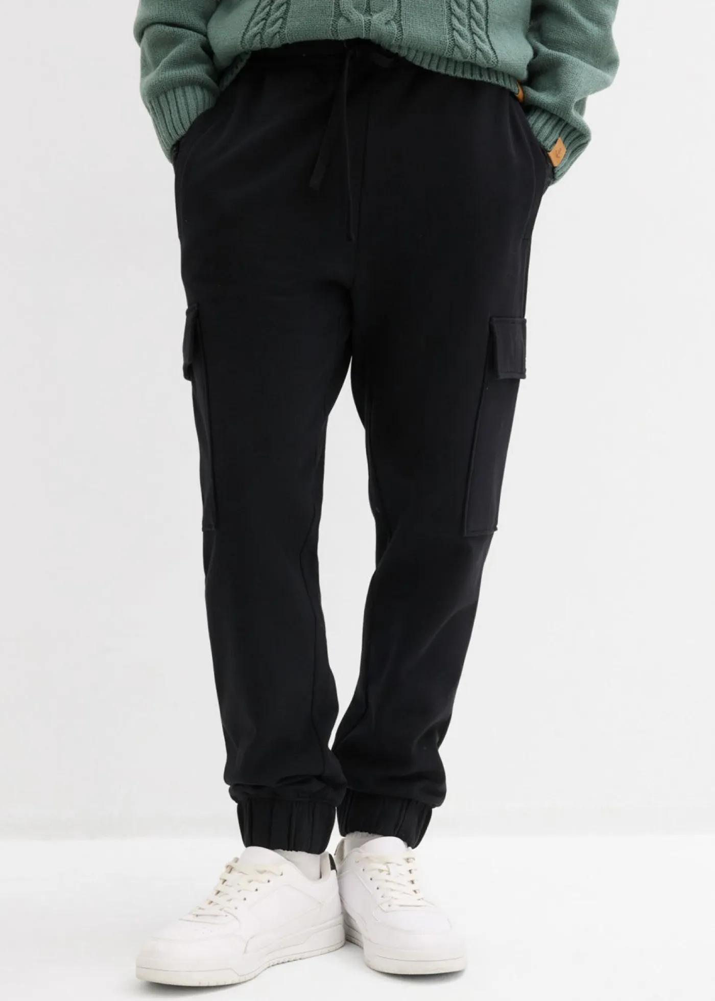 Moderno pantalón de chándal con bolsillos en la pernera, corte holgado e interior suave.