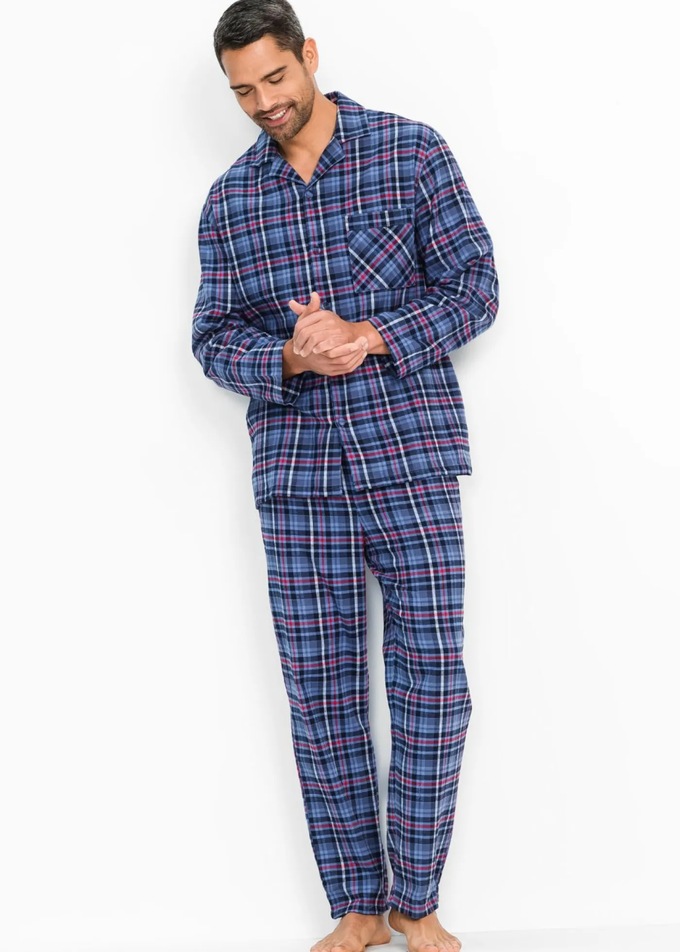 Cómodo y moderno: pijama de franela suave de calidad con botones y pantalón largo para hombres. Cómodo pijama de franela de calidad.