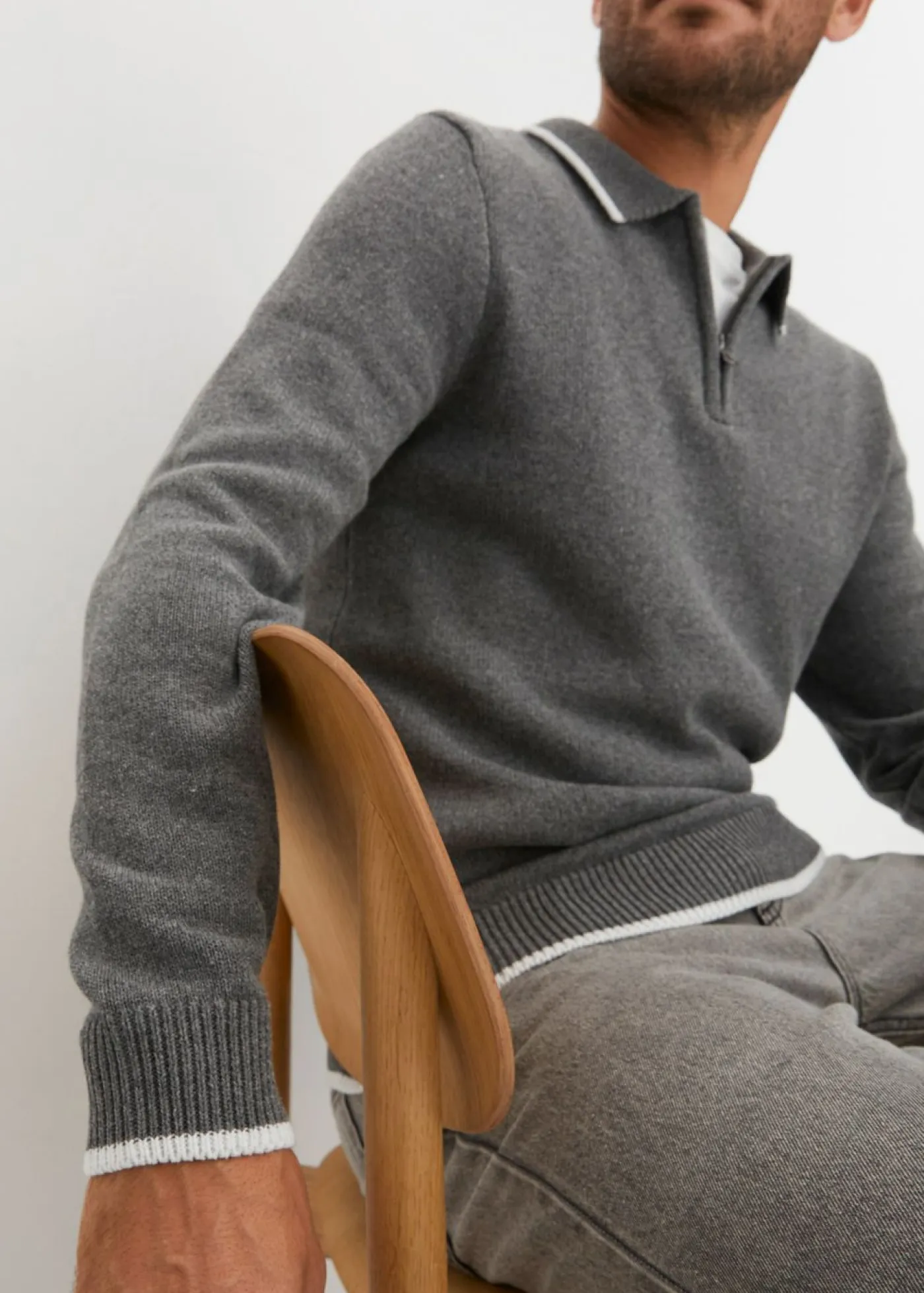 Jersey moderno con cuello de polo y detalles en contraste.