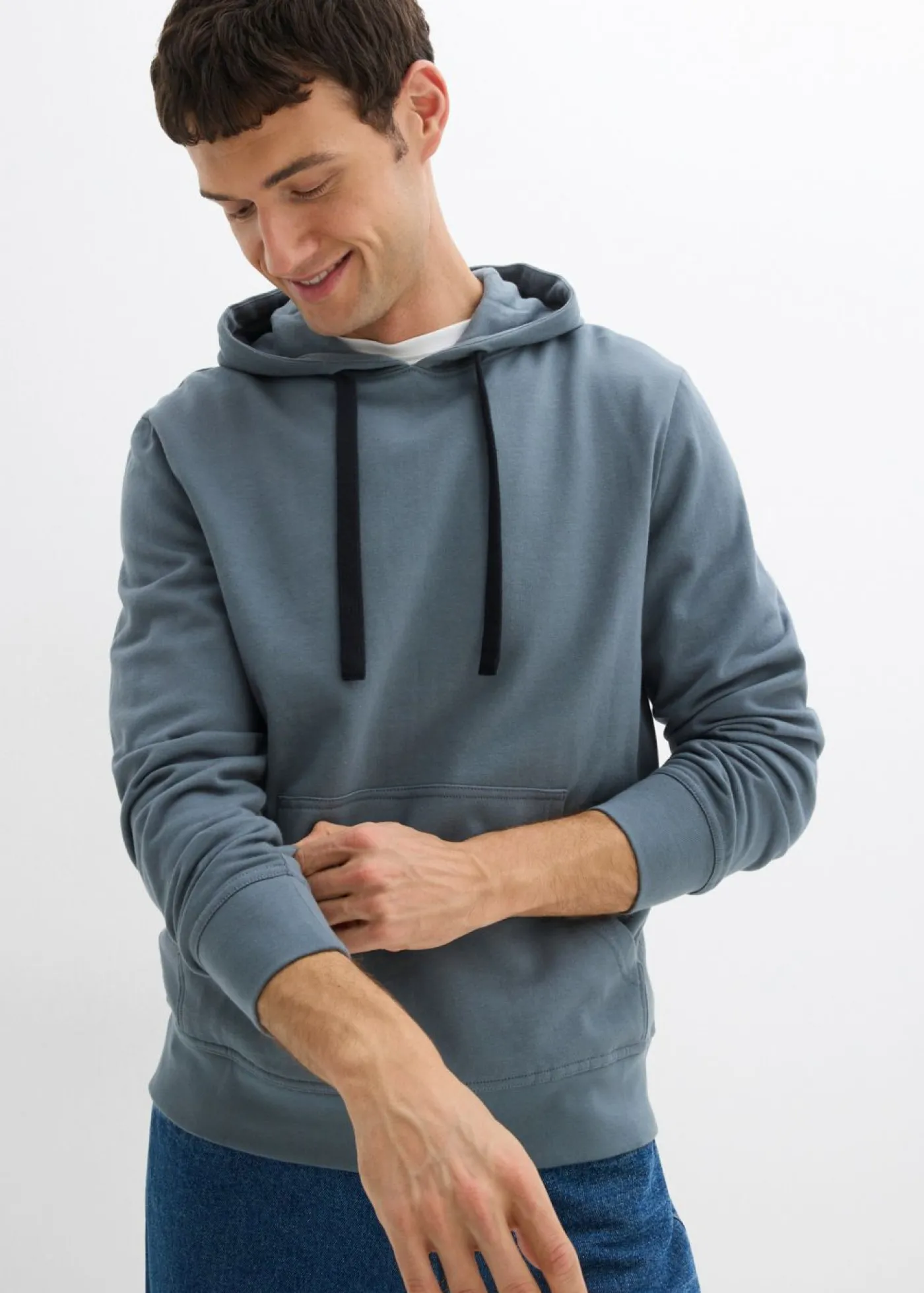 Moderna sudadera básica con capucha y cordones en contraste, interior suave Con puños de canalé y bolsillos de parche.