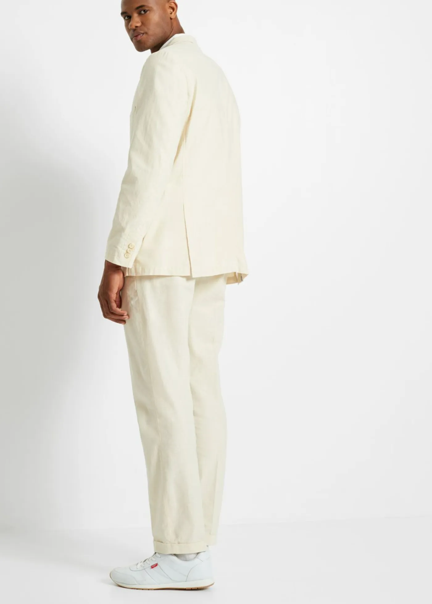 Traje moderno de lino (2 piezas) compuesto por americana y pantalón.