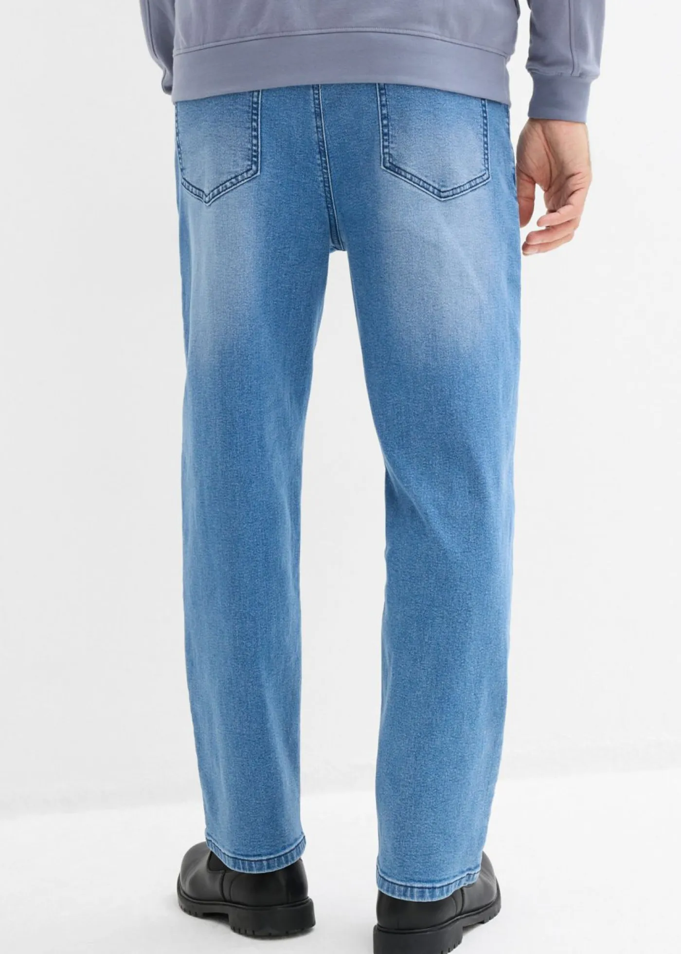Vaqueros elásticos con tiro bajo, diseño clásico de 5 bolsillos, corte baggy y discretos efectos desgastados.
