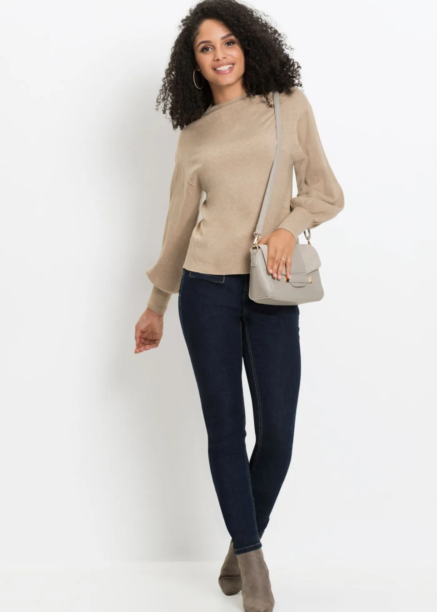 Elegante jersey de punto con mangas abullonadas y cuello alto. Suave jersey con mangas abullonadas. Largo de aprox. 56 cm en talla 38.