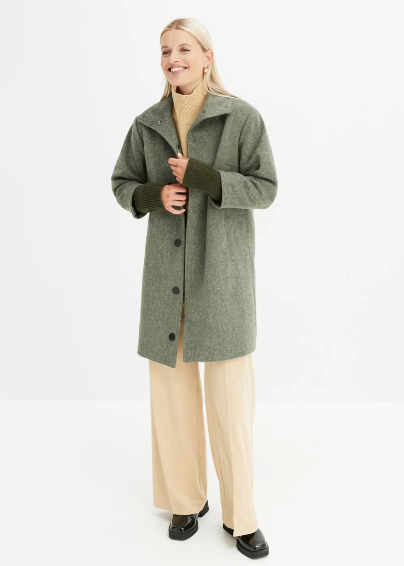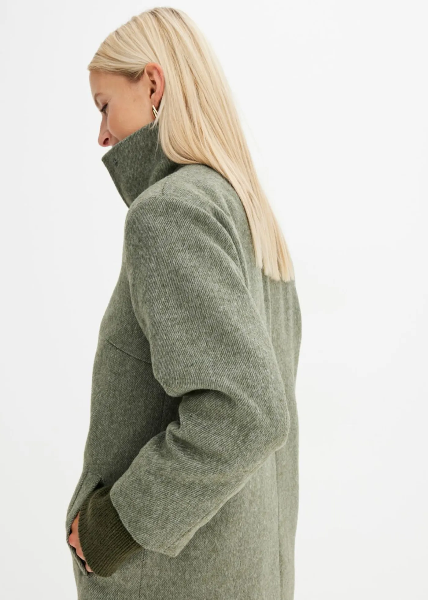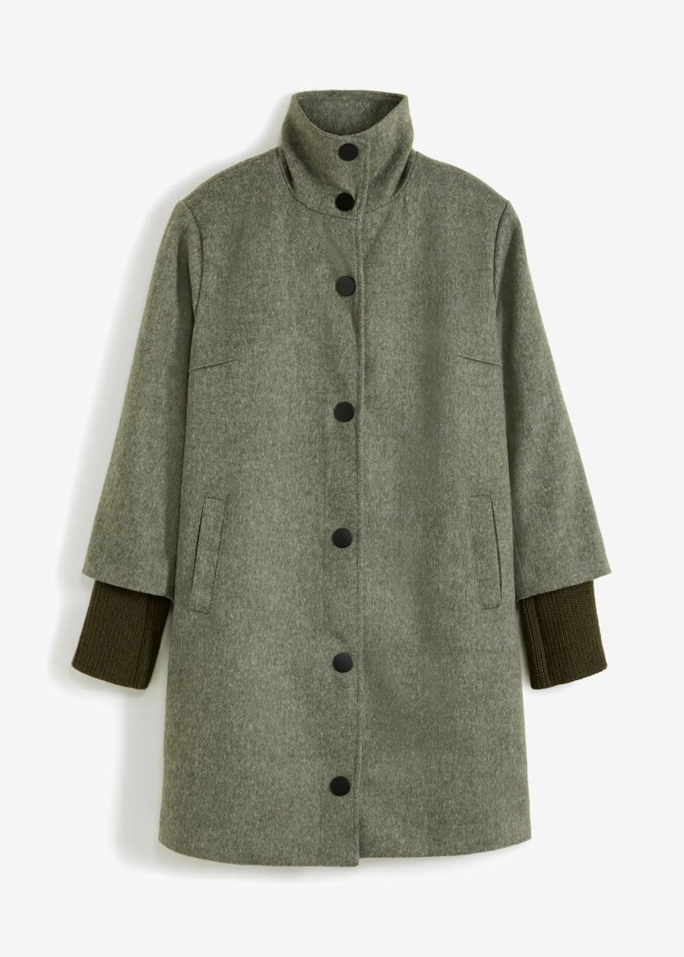 Abrigo corto ajustado a la cadera con aspecto de lana para proteger del viento.