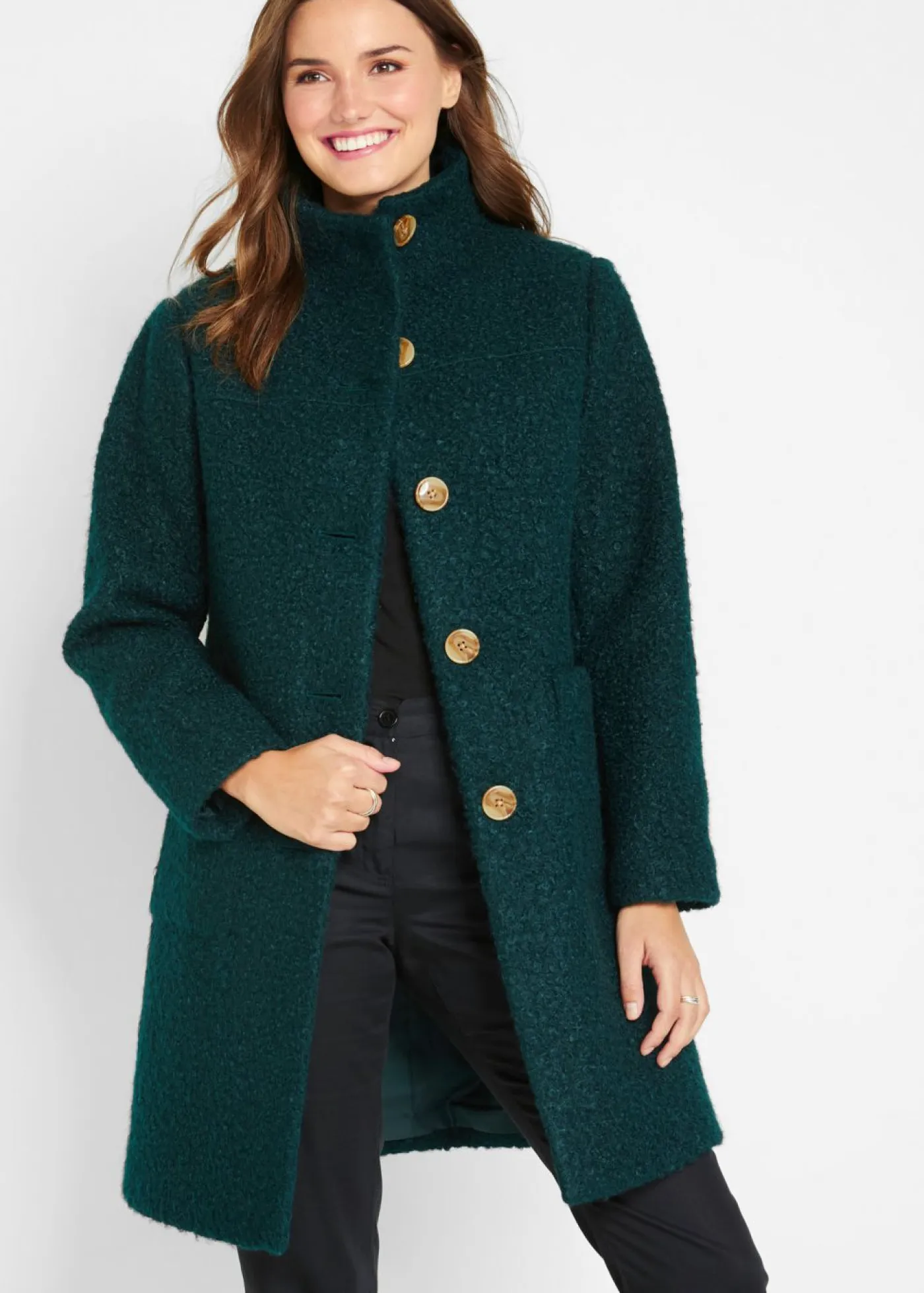 Abrigo de bouclé con bolsillos
